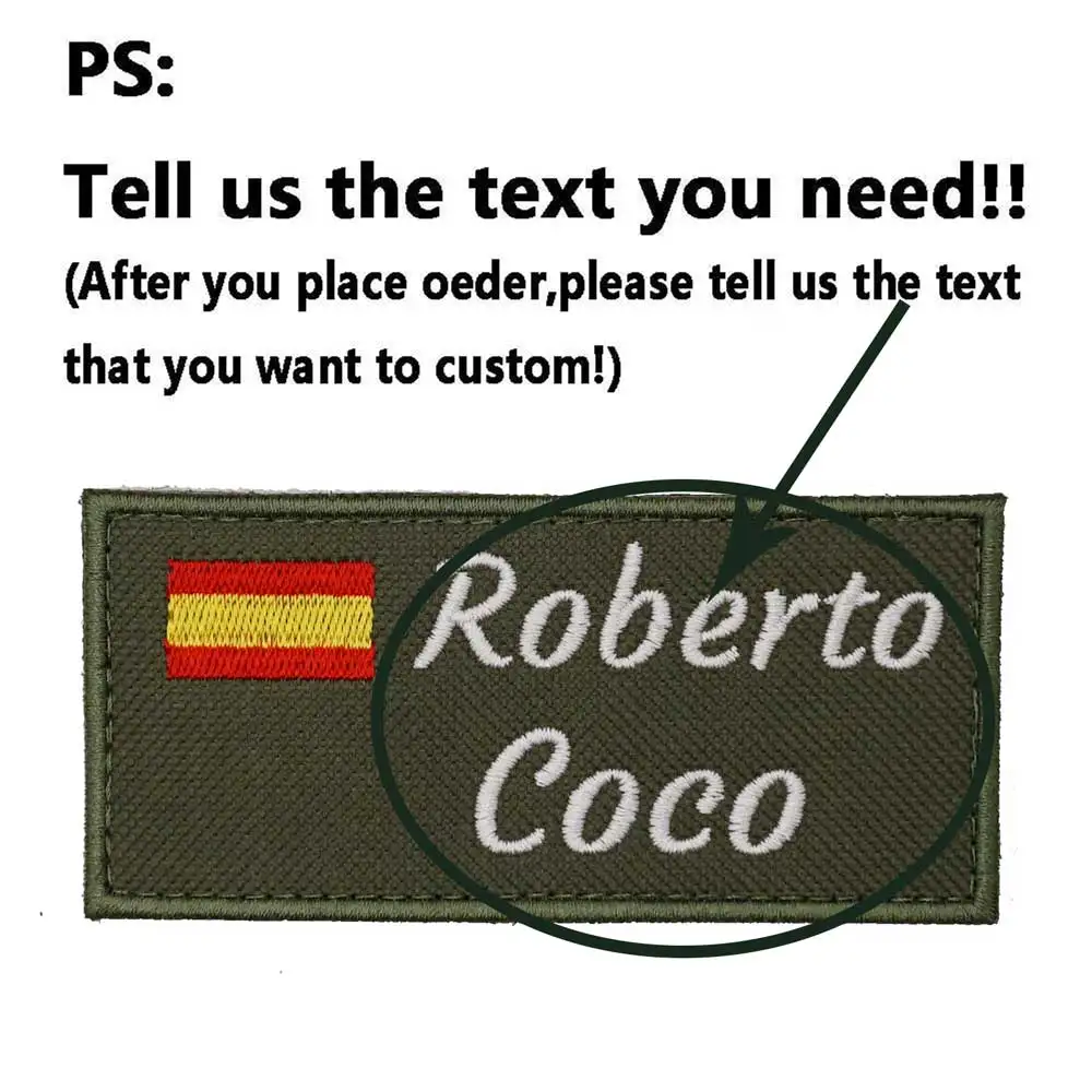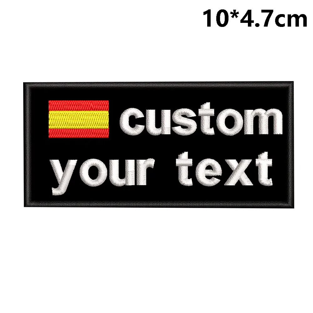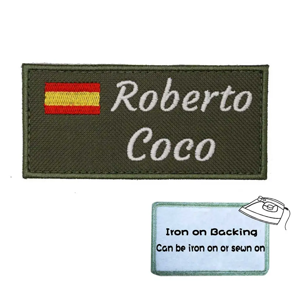 Parche personalizado con nombre de la bandera ES, dos líneas de texto, parche de texto personalizado bordado con respaldo de gancho para ropa, sombrero y mochila