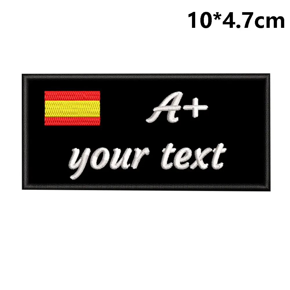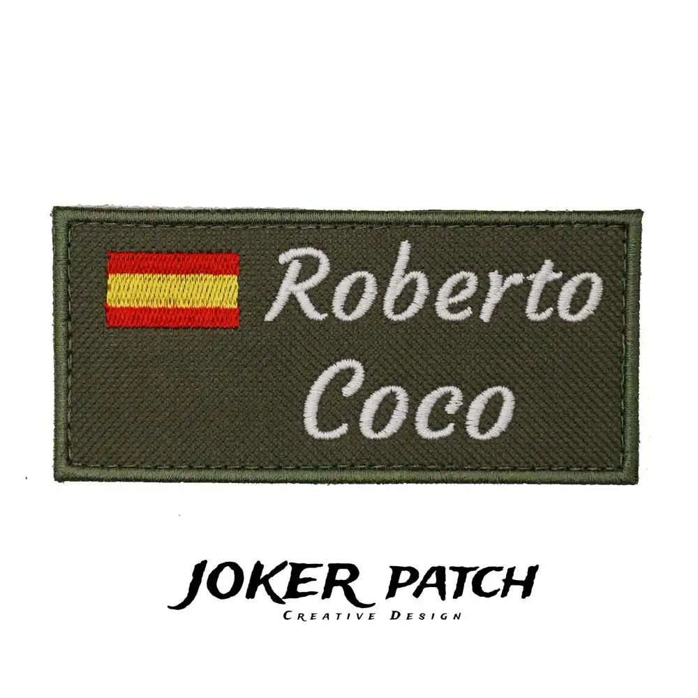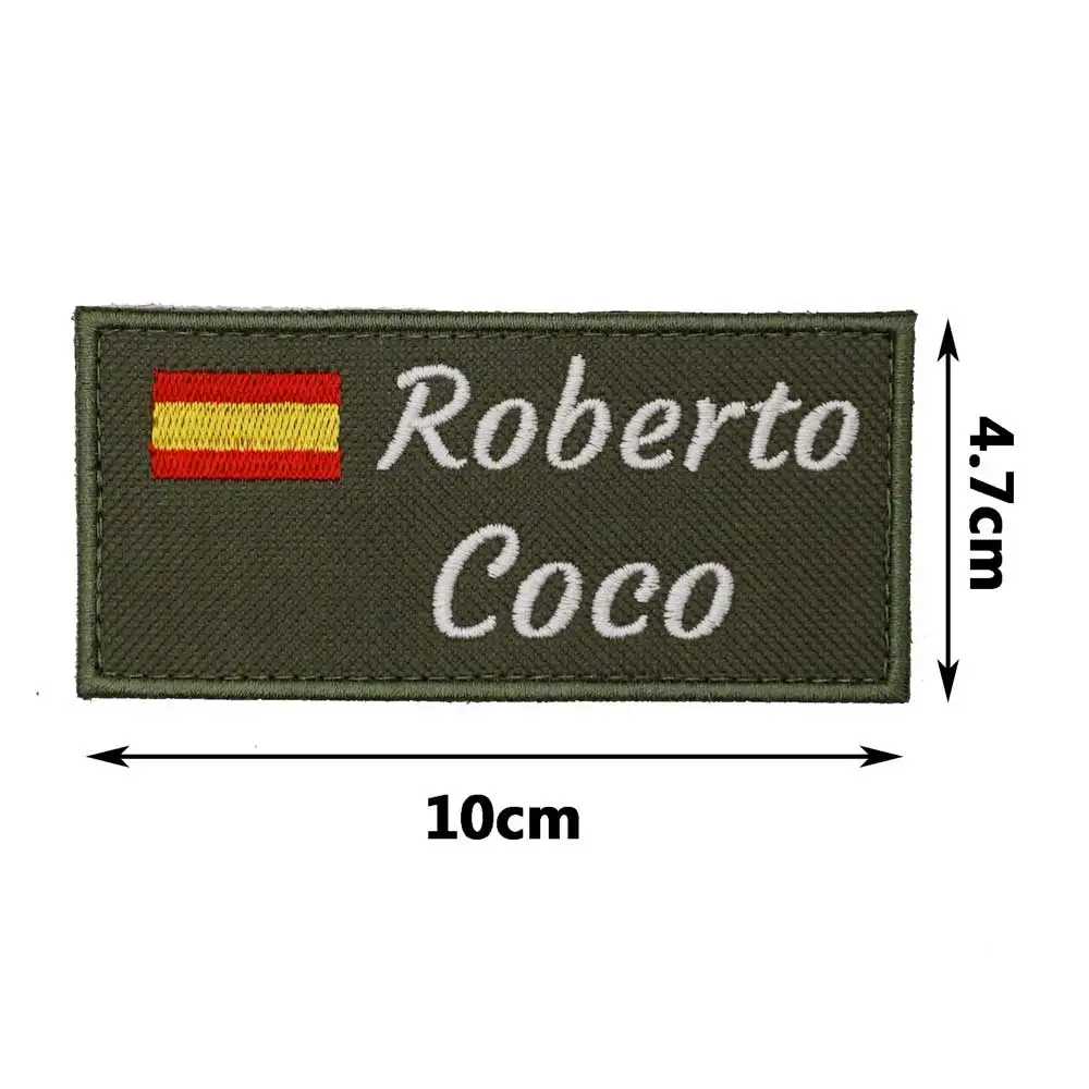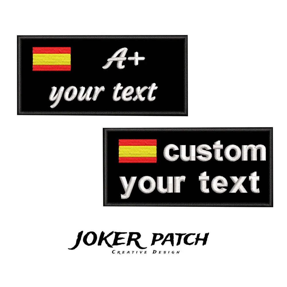 Parche personalizado con nombre de la bandera ES, dos líneas de texto, parche de texto personalizado bordado con respaldo de gancho para ropa, sombrero y mochila