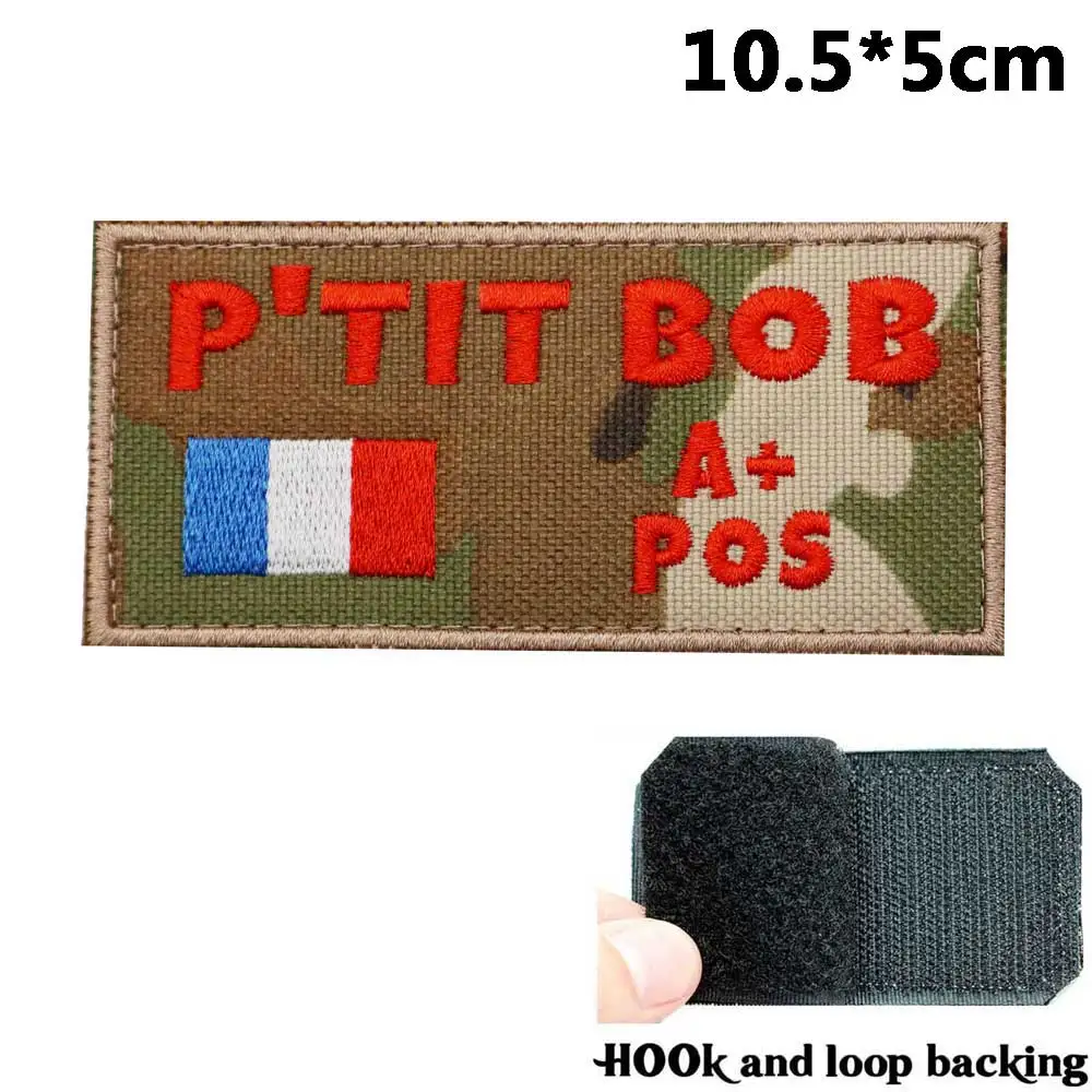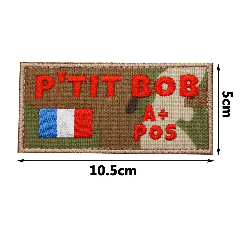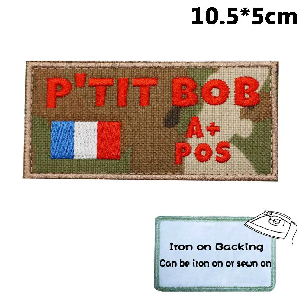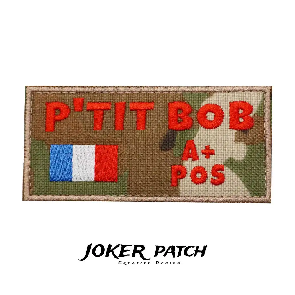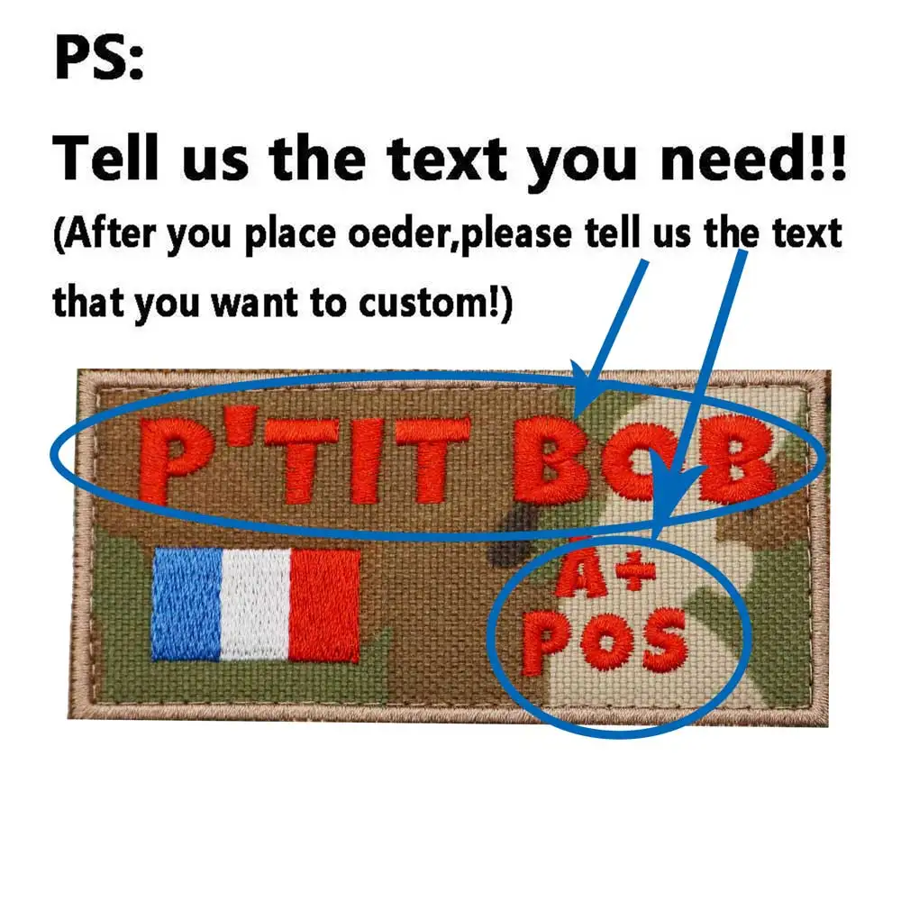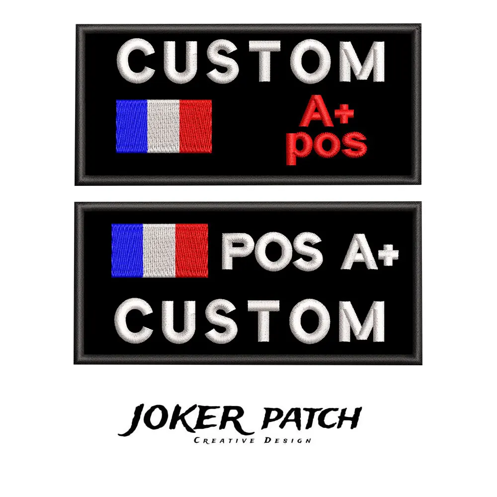 Parche personalizado con nombre de la bandera de Francia, bordado con tipo de sangre, texto personalizado con respaldo de gancho para ropa, sombrero y mochila