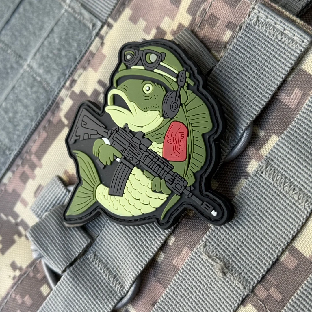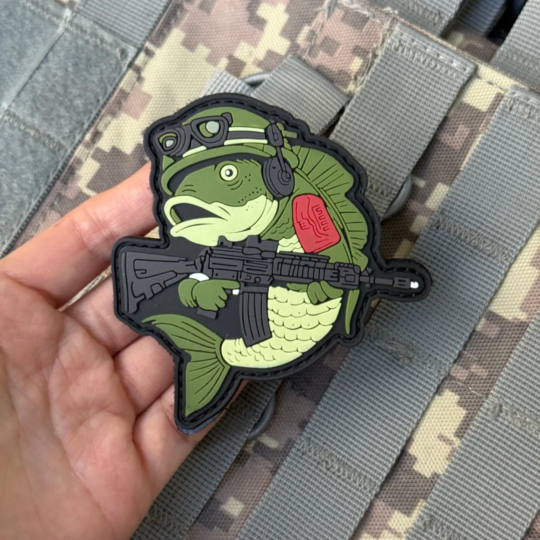 Parche de pez táctico, insignia de moral de PVC, apliques militares personalizados, gancho y bucle para ropa, mochila, accesorios, pegatinas