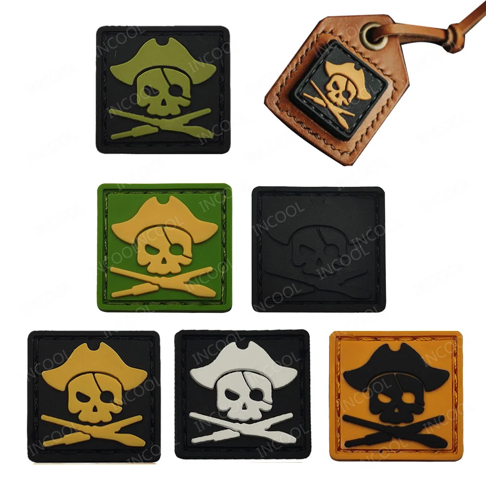 [Especificación]:Parche de pistola de calavera de pirata de PVC 3D, insignias de goma impermeables cuadradas, parches de tamaño Mini de 2,5 CM para mochila, ropa, chalecos, sombrero
