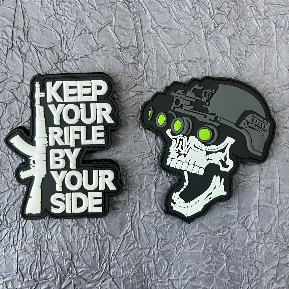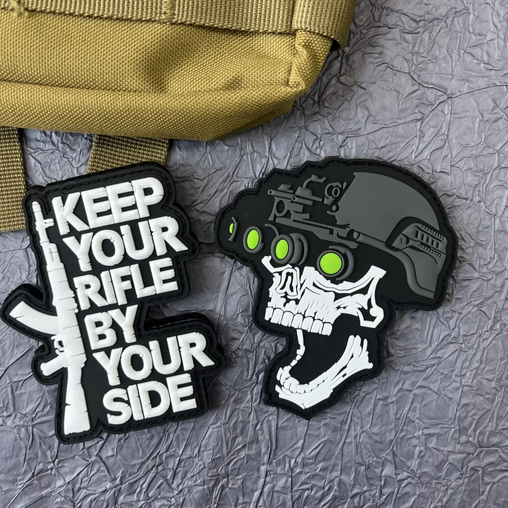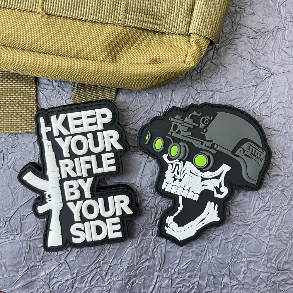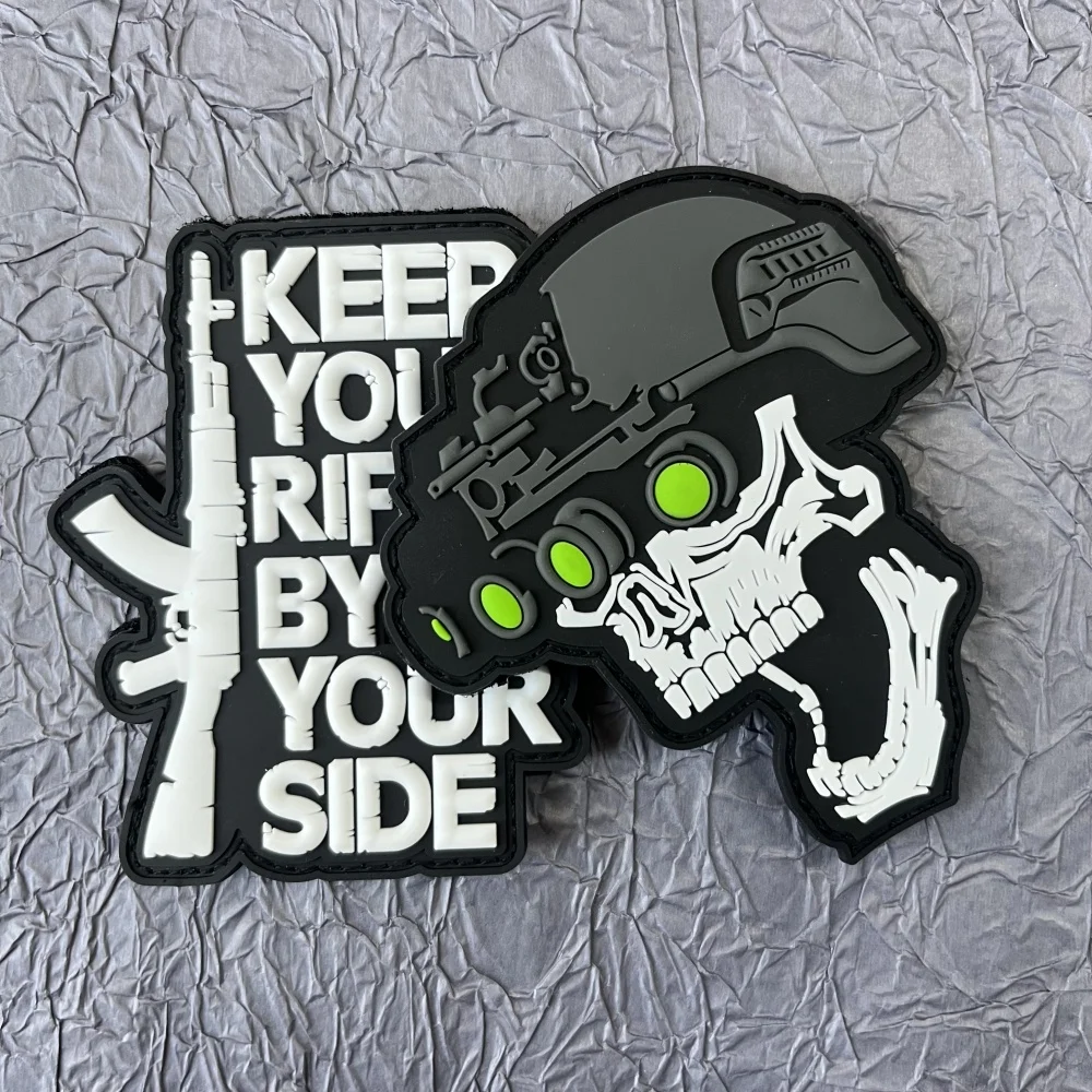 Skull Gun "Keep Your By Your Side" Parche Pvc Clorhing Stickers Parches tácticos militares Mochila Insignias de gancho y bucle Apliques