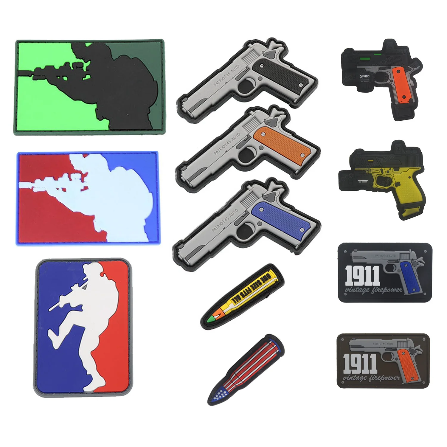 Parche de pistola de PVC 1911, pistola de asalto de potencia de fuego, brazalete epoxi, Base rota, insignia táctica militar, diadema, ropa
