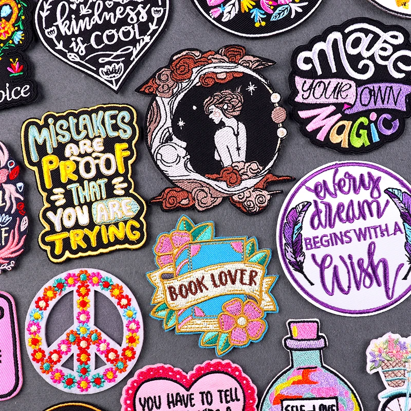 Parche para planchar para amantes de los libros, parches bordados de coraje para niñas, para mochila, decoración de letras de belleza, insignia adhesiva DIY