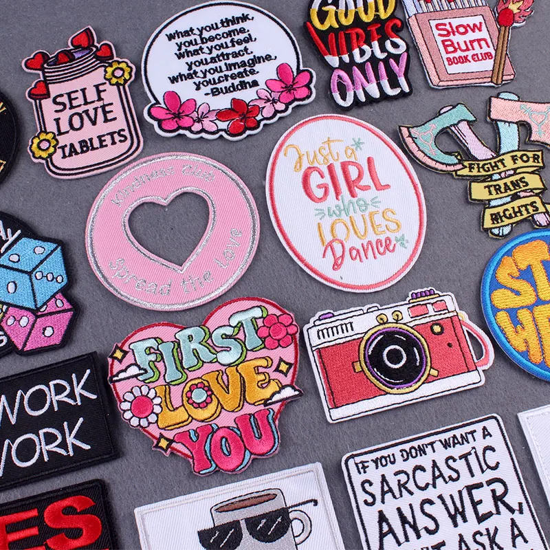 Iron On Patch Slogan Embroidered Patchs For Clothing thermoadhesive Patches On Clothes DIY Words Stripes Badges On Backpack