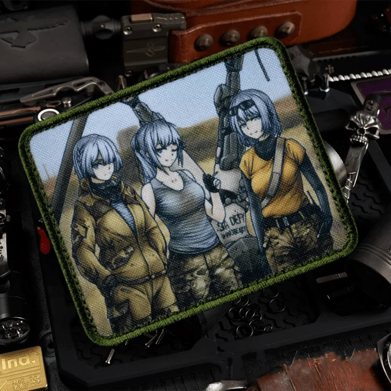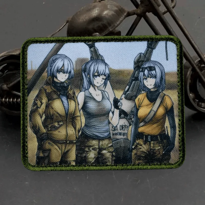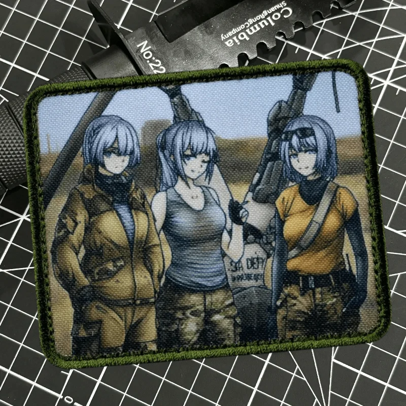 Parche de primera línea para niñas, parches de gancho y bucle de moral de Chica de Anime, insignia táctica, emblema, brazalete militar, pegatinas para mochila