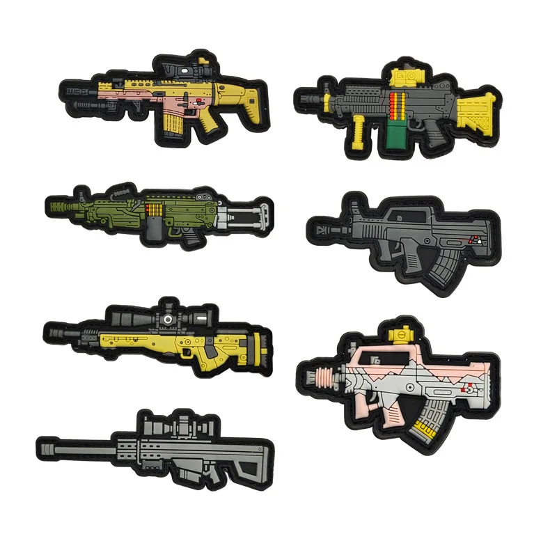 Parche de proceso de plástico de goteo de PVC con insignia de goma con sello de arma de edición Q