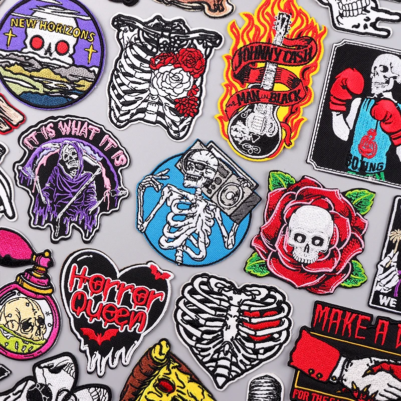 Parche Punk de Hip Hop para planchar, parches para ropa, parches bordados de esqueleto de calavera en ropa, parche Fusible para Pegatinas de ropa