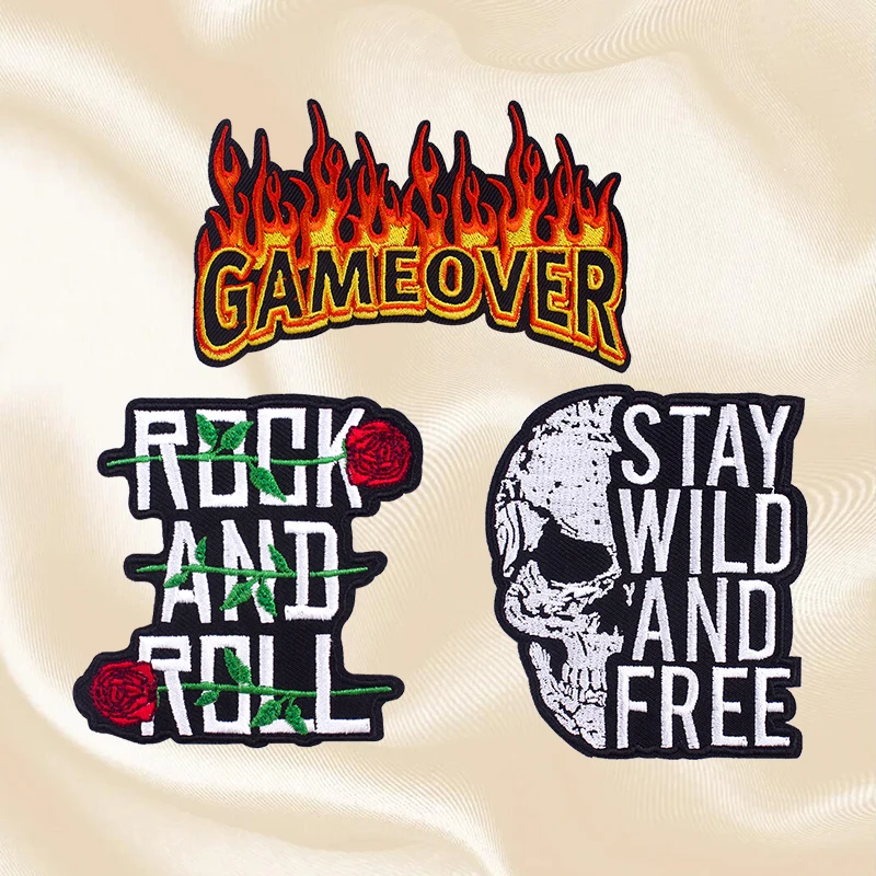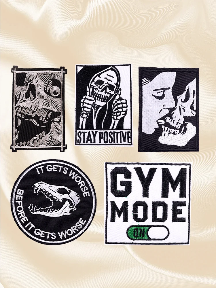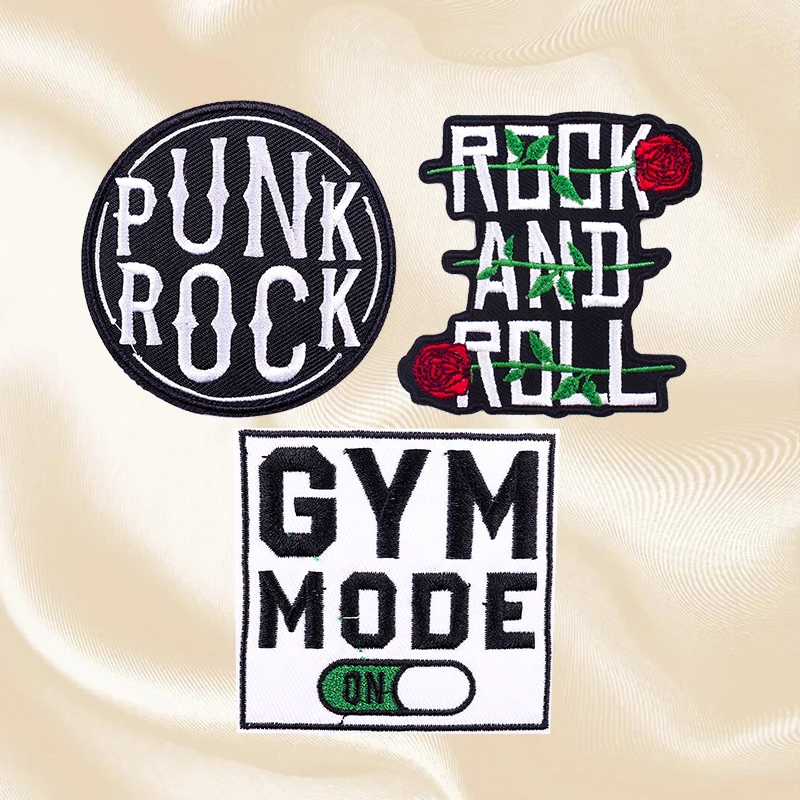 Parche Punk Rock MODO de gimnasio/Patch bordado de letras insignias de costura de calavera Punk DIY parches termoadhesivos para ropa
