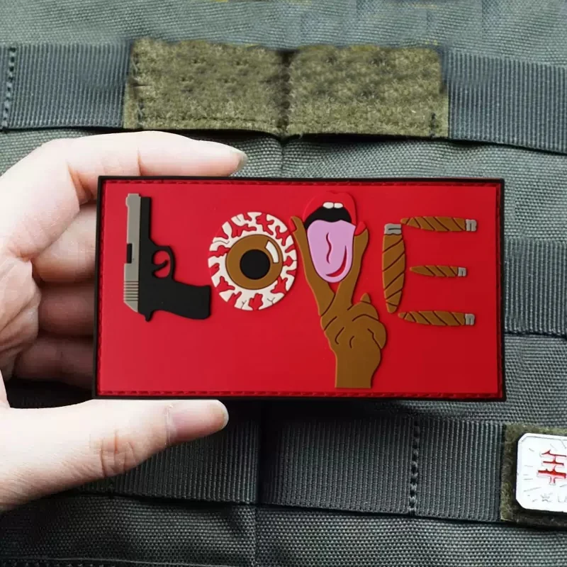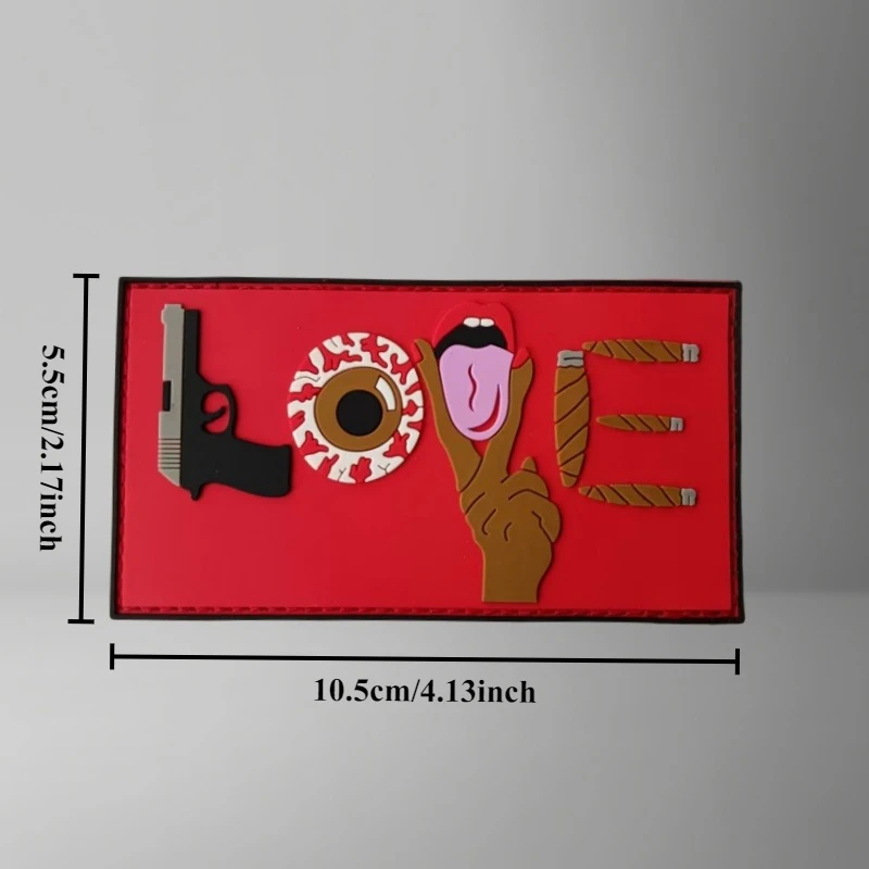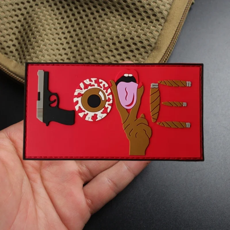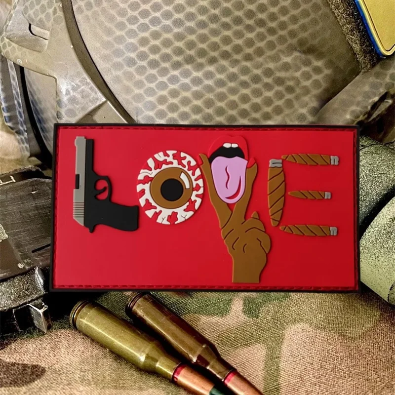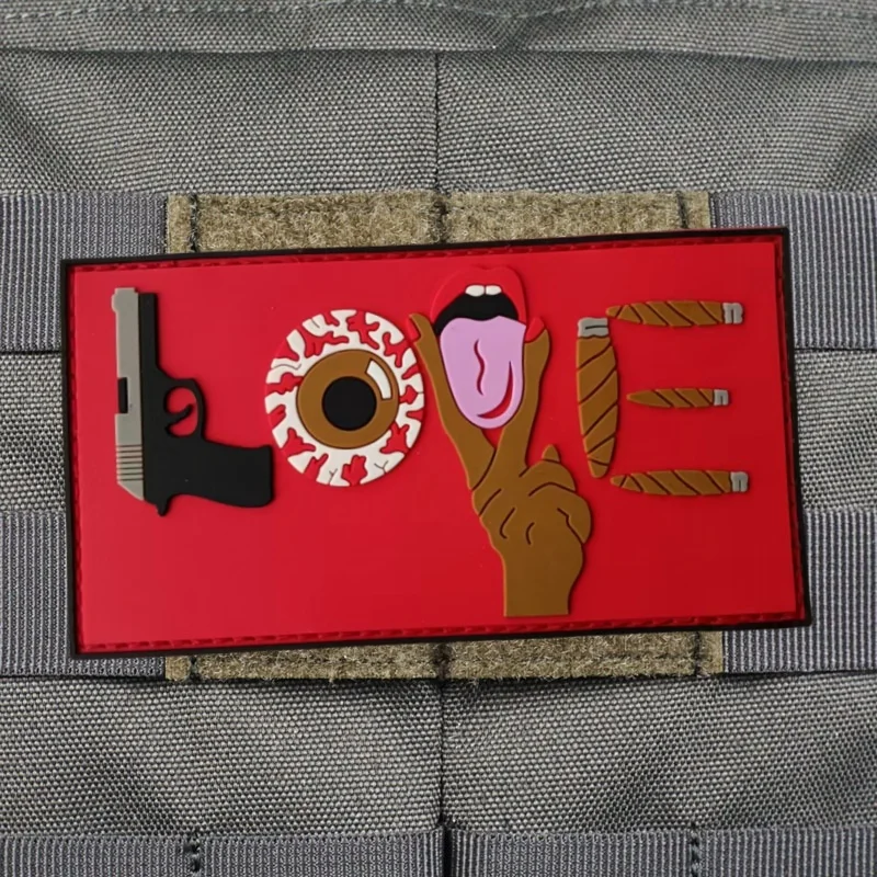 "Amor, pistola, ojo, lengua" Parche de PVC 3D Insignia de moral táctica Parches militares Pegatinas de mochila para ropa