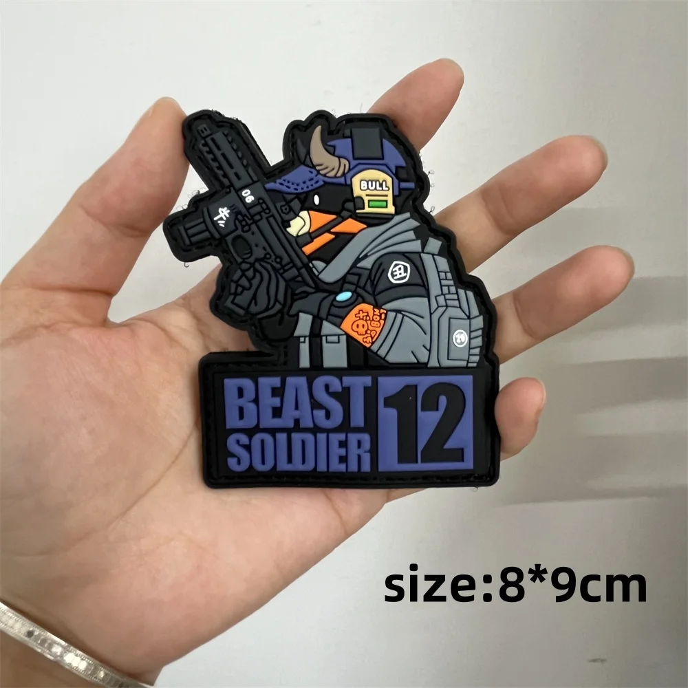 Parche de PVC 3D de bestia, Guerrero, conejo, vaca, parches de gancho y bucle para ropa, pegatinas tácticas, insignias de moral, parches de mochila