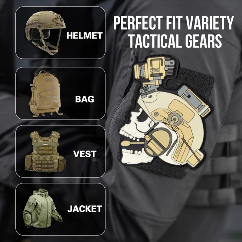 Parche de PVC 3D con cabeza de calavera, chaleco táctico, sombreros con gancho y bucle, insignia de moral, mochila, pegatinas decorativas, parches para brazalete para ropaNOTA:1.Diferentes computadoras muestran los colores de manera diferente, el color real del artículo puede variar ligeramente del de las imágenes.