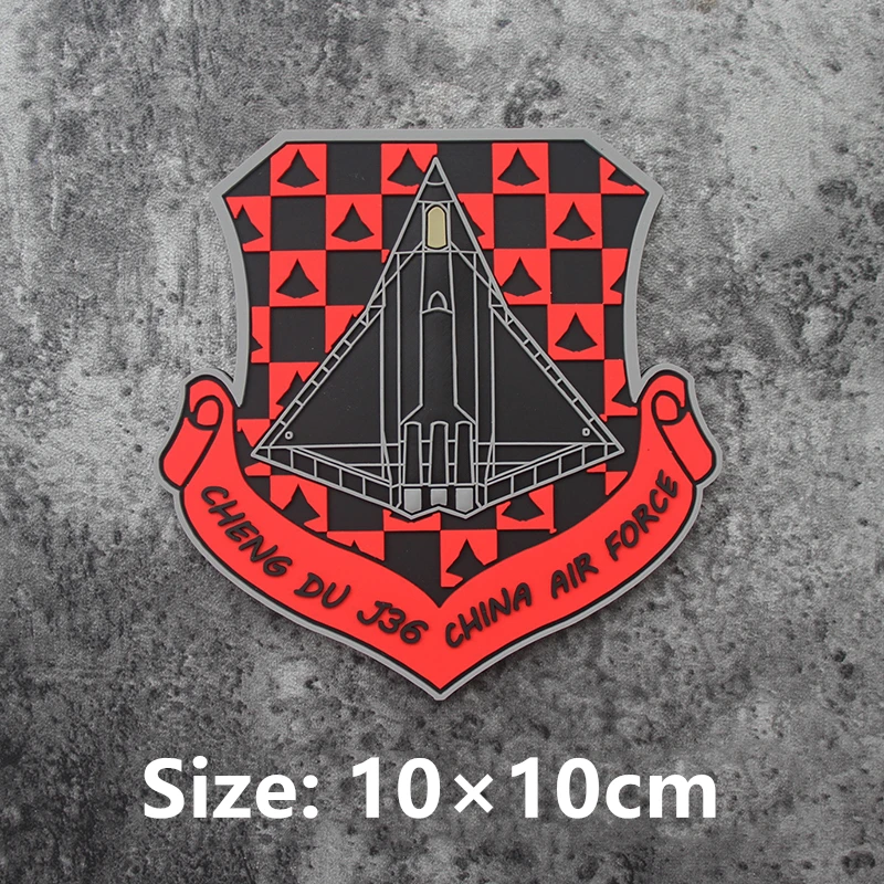 Parche de PVC 3D de Chengdu J36 China Air Force JX-WING Fighter J10 insignia de goma táctica para decoración de ropa y bolsa