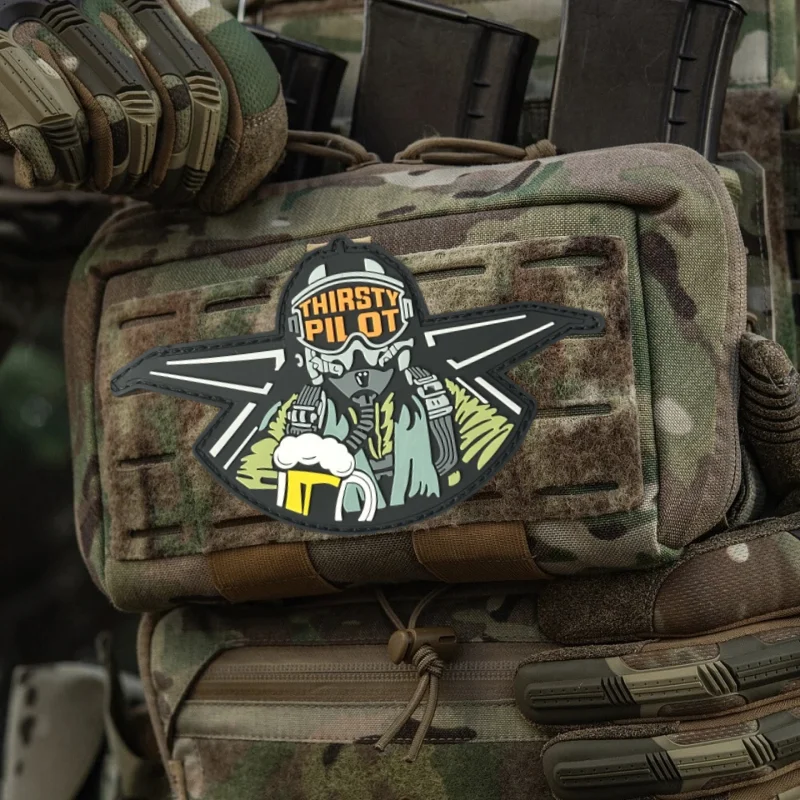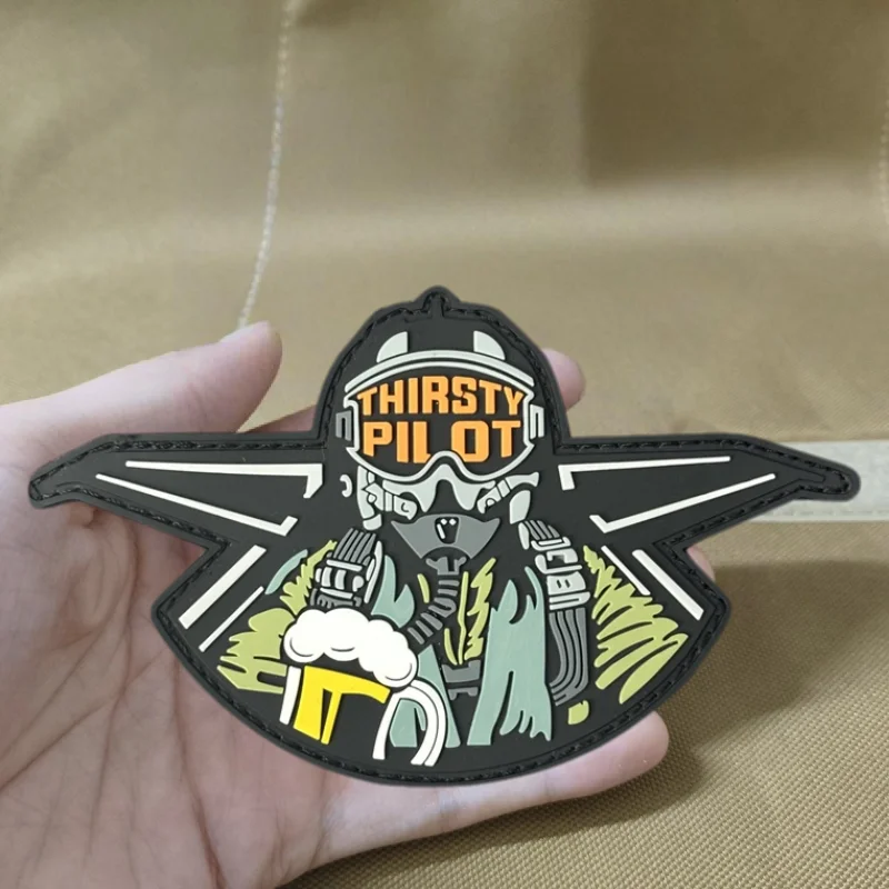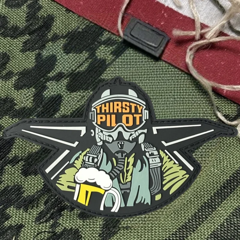 Parche de PVC 3D Thirsty Pilot Air Force, chaleco táctico, sombreros con gancho y bucle, insignia de moral, pegatinas para mochila, parches para abrazadera para ropa