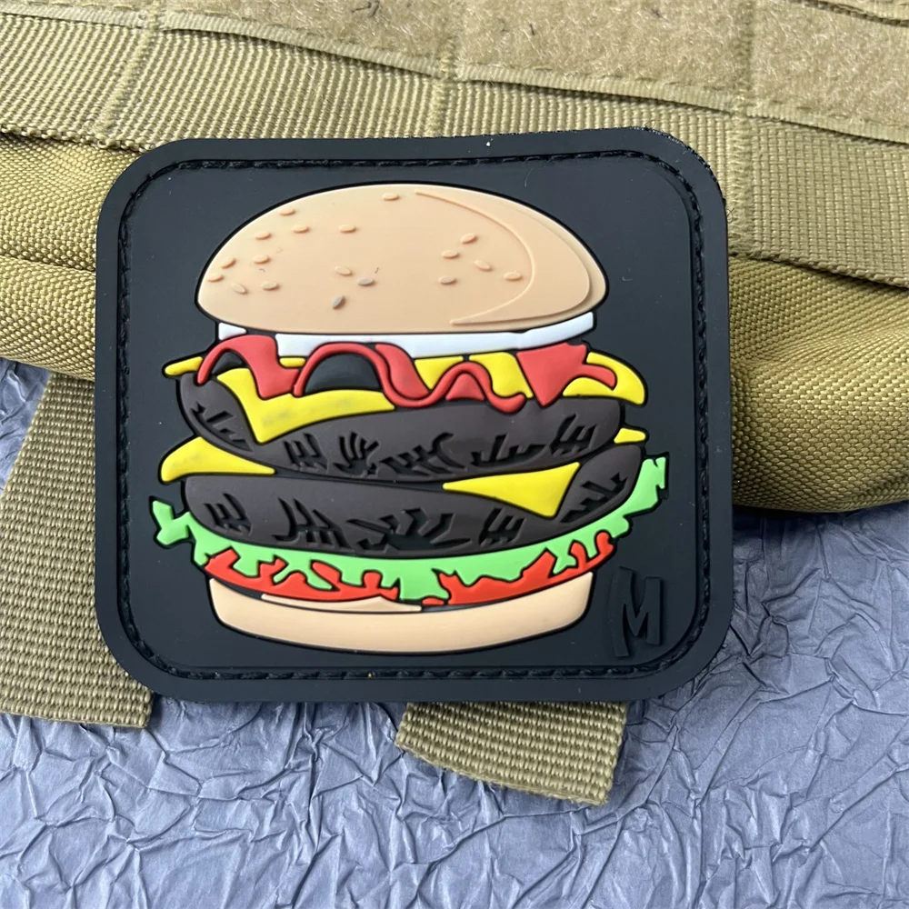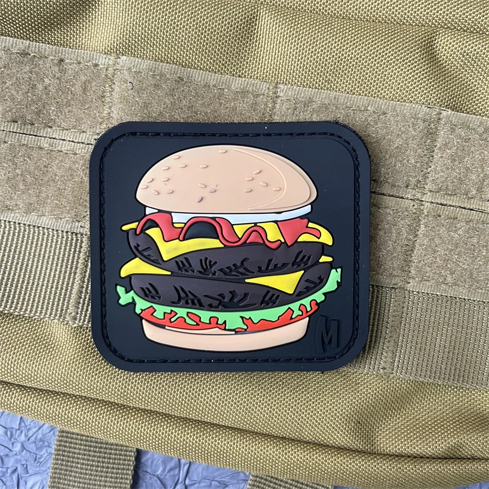 HAMAS Daga Hamburguesa 3D Parche de PVC en la ropa Insignias de dibujos animados Parches de gancho y bucle Mochila Pegatinas tácticas