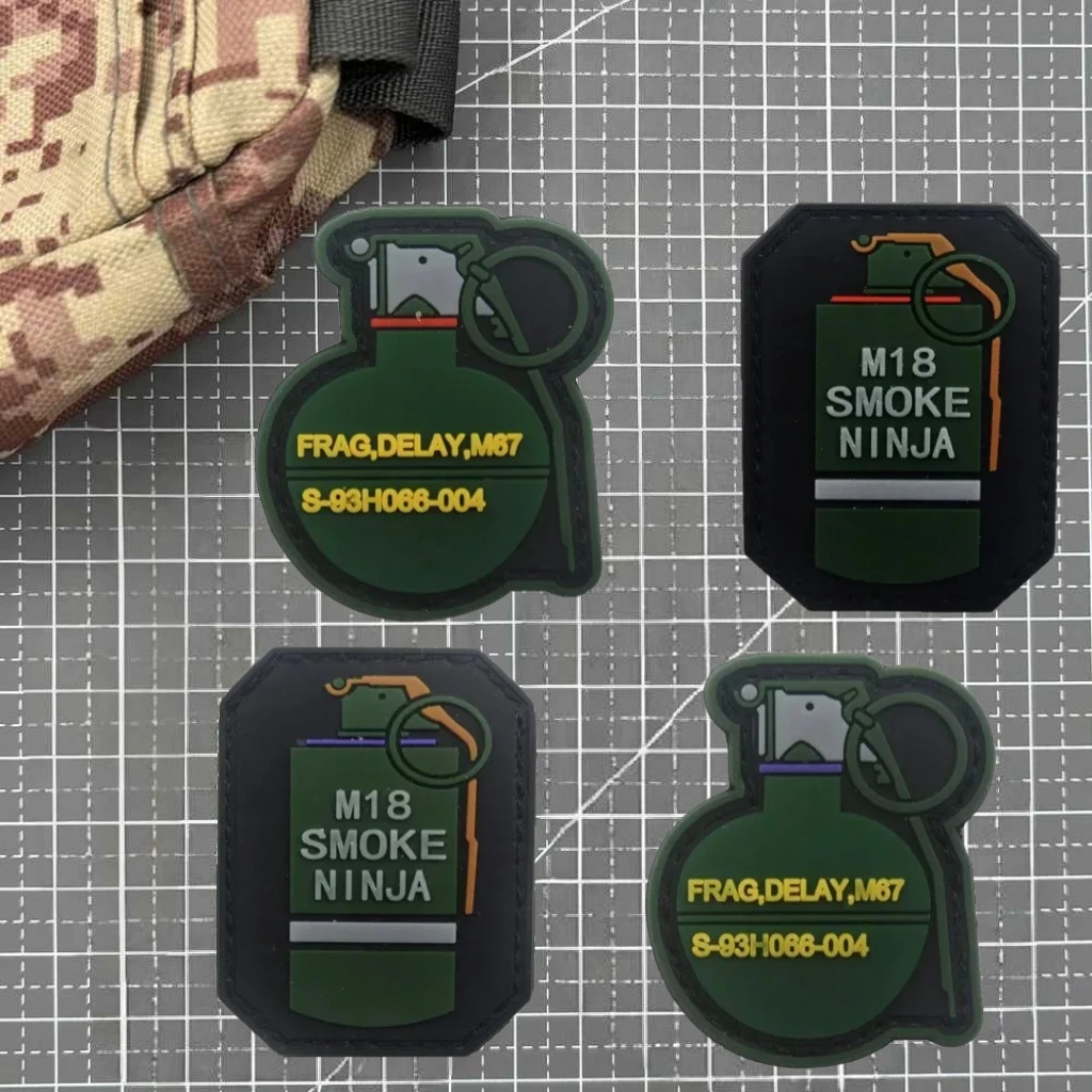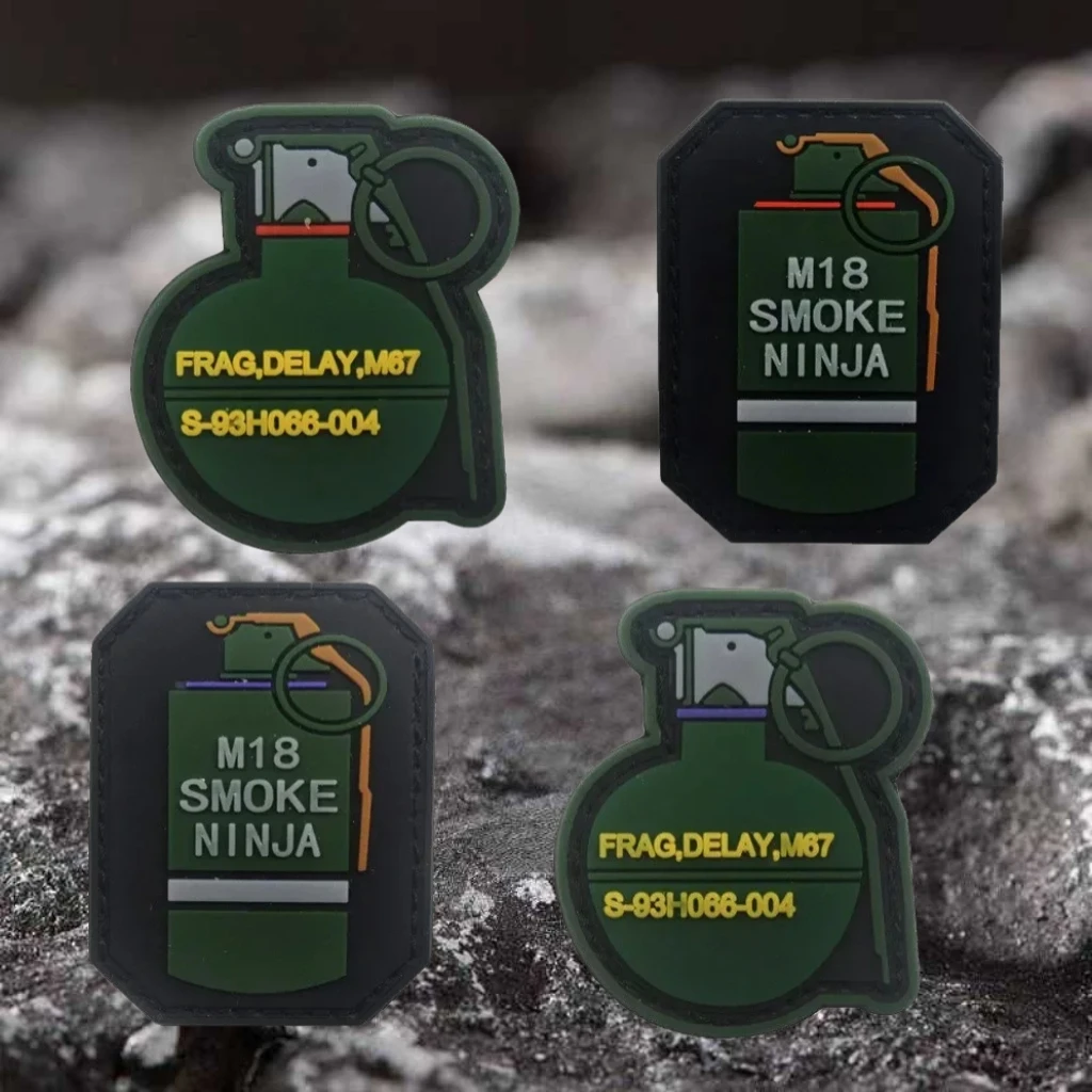Parche de PVC 3D de humo M67 Grenade M18, insignia de moral con gancho y bucle de goma, pegatinas decorativas para mochila táctica, parches para ropa