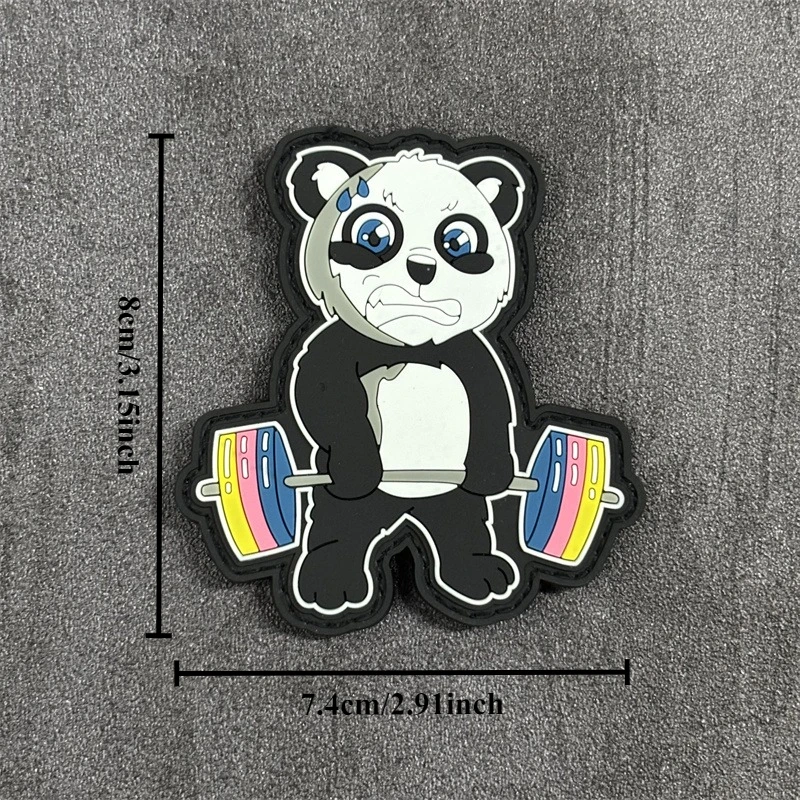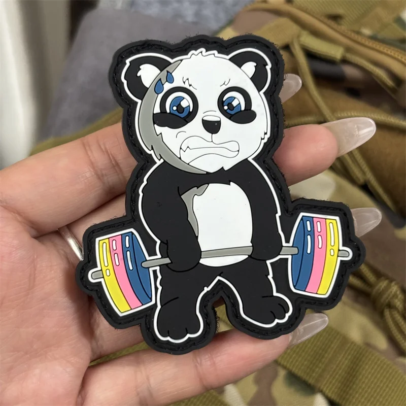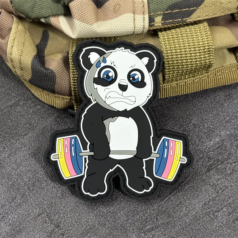"Panda levantamiento de pesas" parche de PVC 3D insignia de moral táctica gancho bucle parches militares ropa mochila pegatinas brazalete