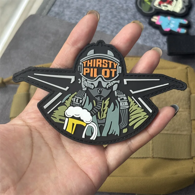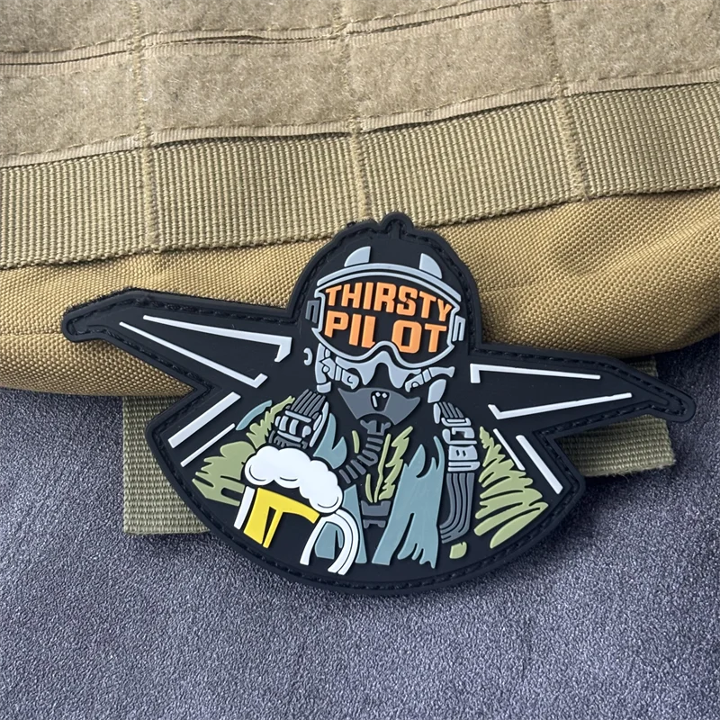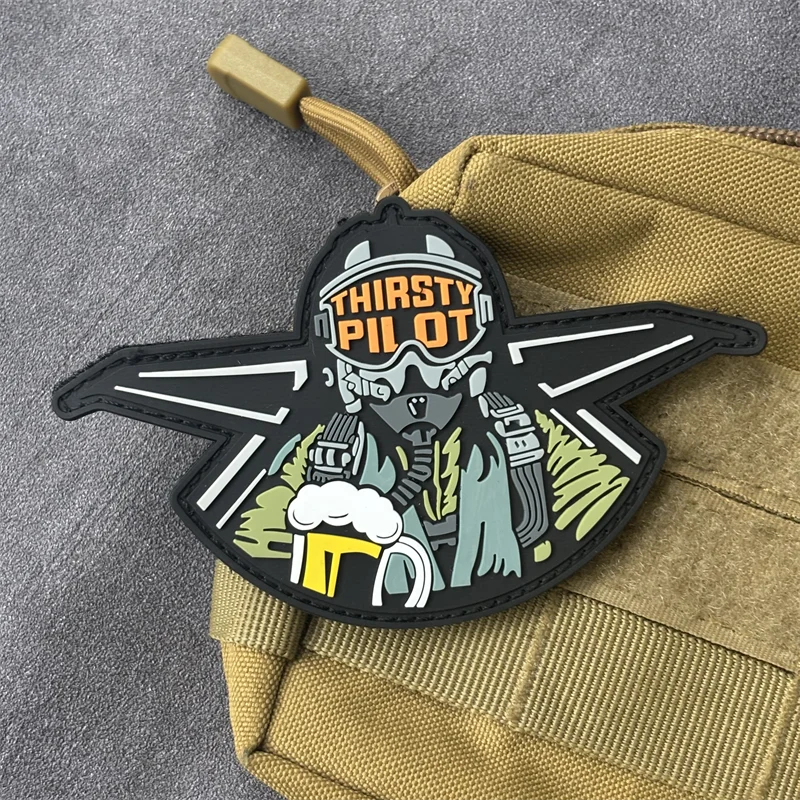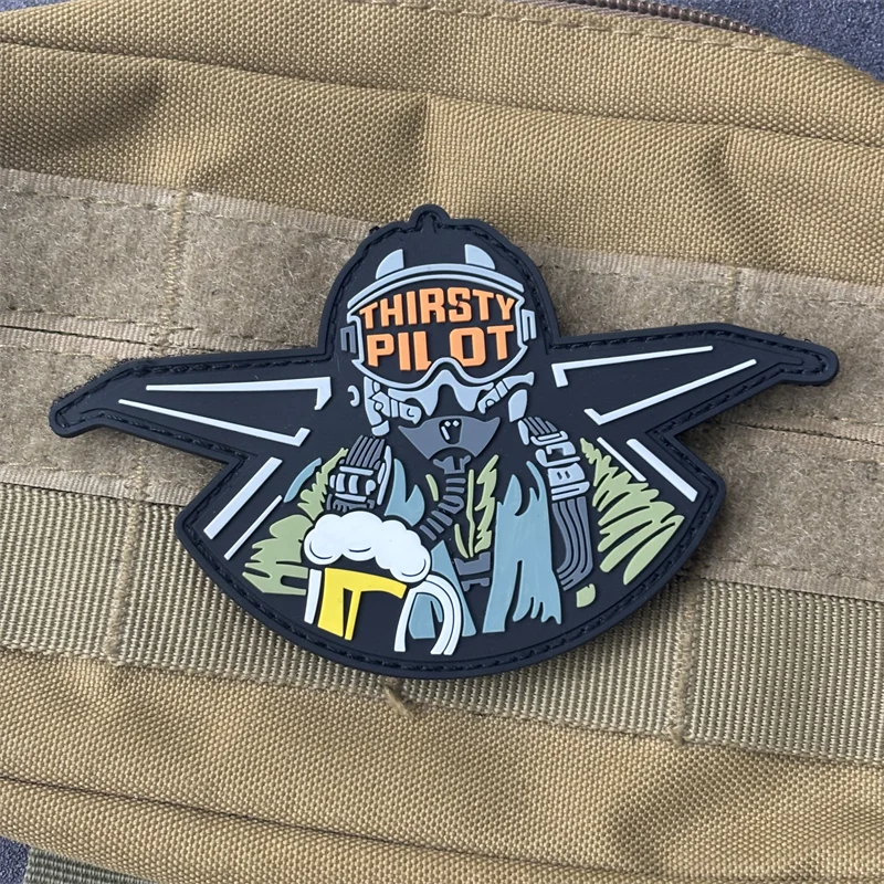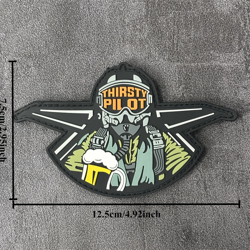 "Thiristy Pilot Air Force" Parche de PVC 3D en ropa Insignia de moral táctica Gancho Loop Parches militares Mochila Pegatinas Brazalete