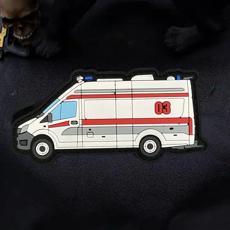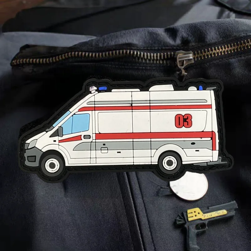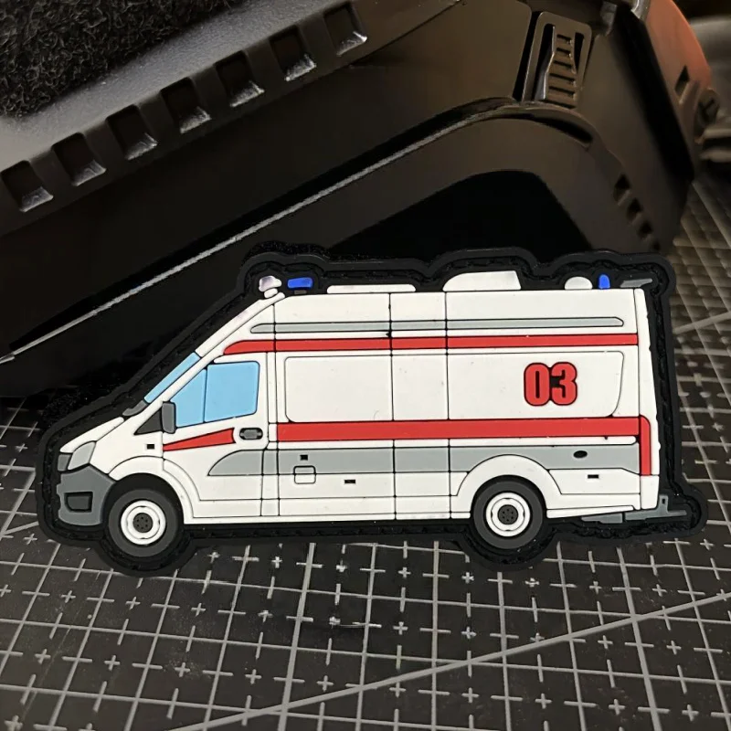 Life Rescue Vehicle 3D PVC Patch Funny Military Hook Loop Tactical Morale Badge Backpack Decorative Sticker Patches for Clothing
