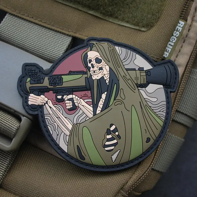 Parche de PVC con agarre de Grim Reaper, armas urbanas de Grim Reaper, insignia táctica de goma suave, brazalete para decoración de bolsas de ropa