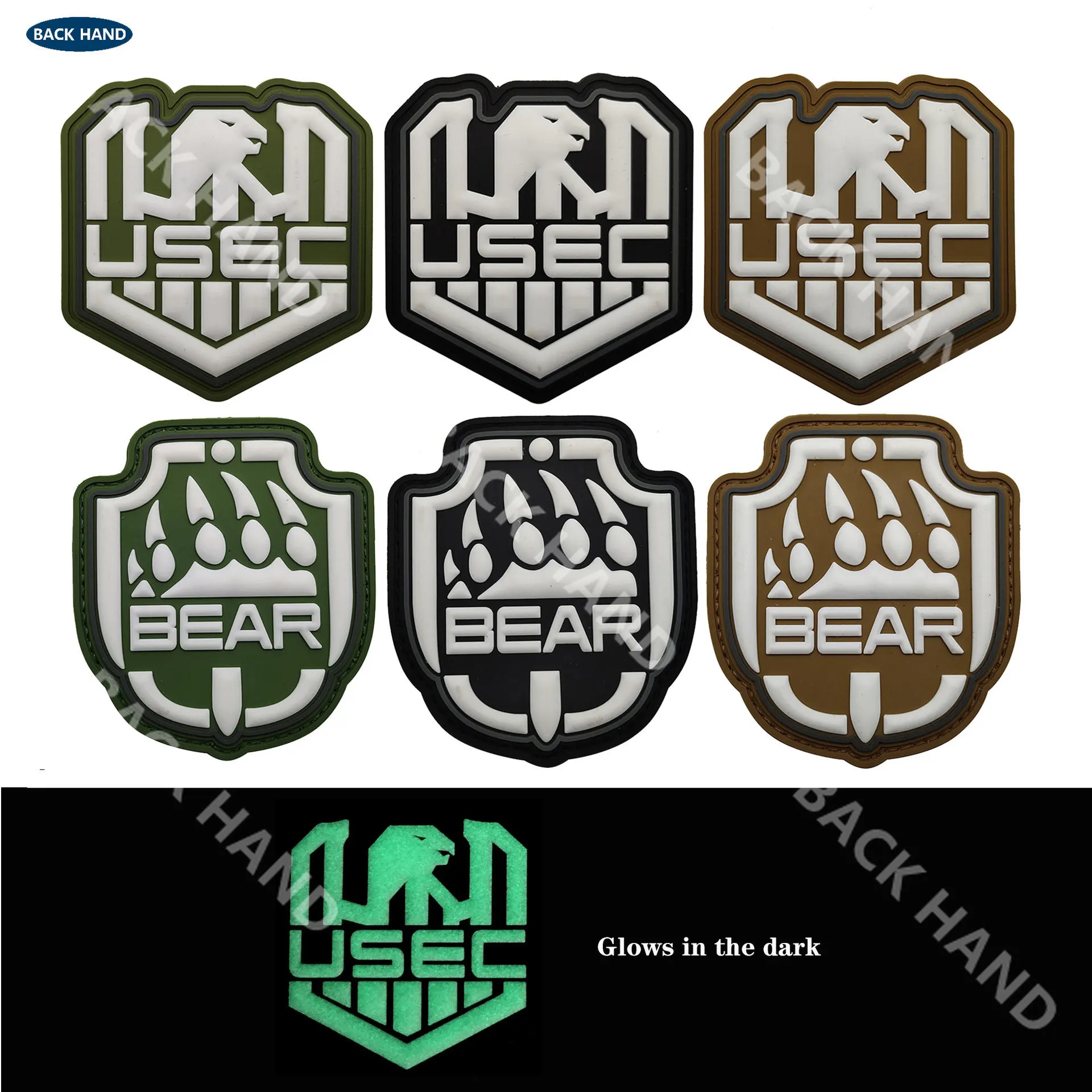 Atrás.El parche bordado/reflectante tiene gancho y bucle, el parche de PVC solo tiene gancho (si desea un bucle, compre un bucle de 8 CM).