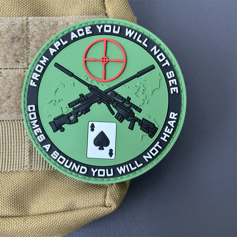 Parche de PVC de francotirador, Parche de PVC táctico para moral de francotirador, tarjeta Ace, parche para pistola, brazalete con gancho y lazo, insignia de Moral del Ejército militar, pegatinas para mochila
