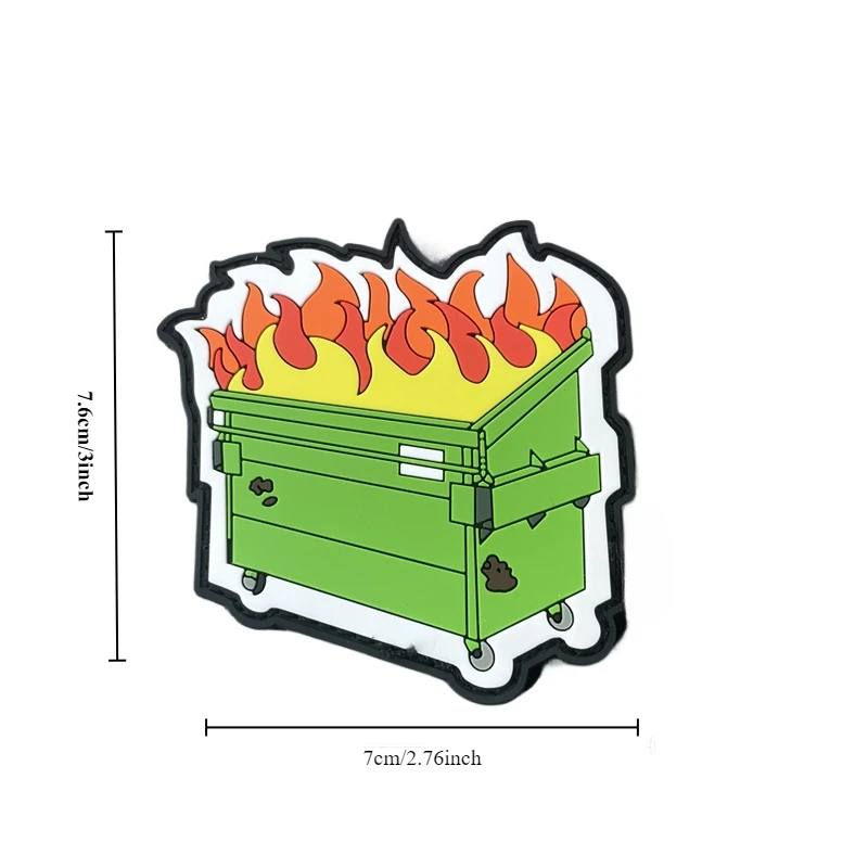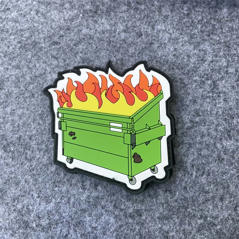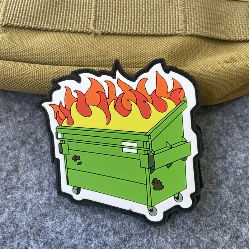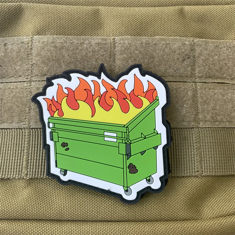 Parche de PVC de fuego basura, insignia de moral de llamas, gancho y bucle, brazalete militar, pegatinas de ropa, parche táctico para mochila