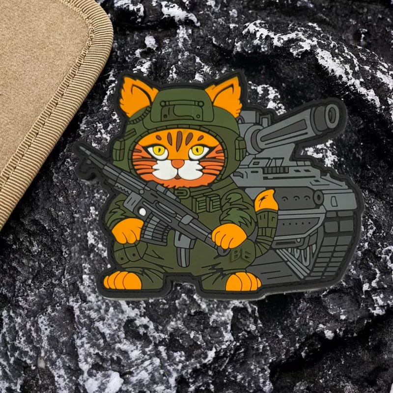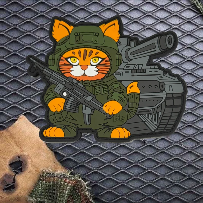Parche de PVC para gato tanque, brazalete táctico de goma suave 3D con gancho y bucle, insignia decorativa de moral, parches adhesivos para mochila para ropa