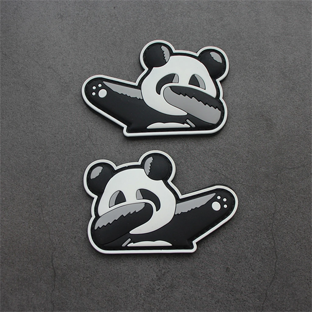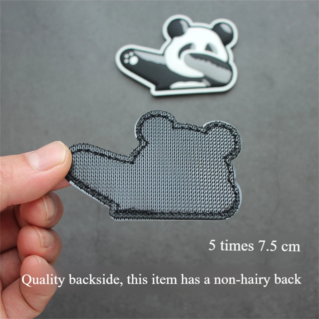 Parche de PVC con gesto de Hip Hop de Panda de dibujos animados que brilla en la oscuridad, insignia táctica creativa divertida para diversión nocturna y espíritu de equipo, decoración DIY