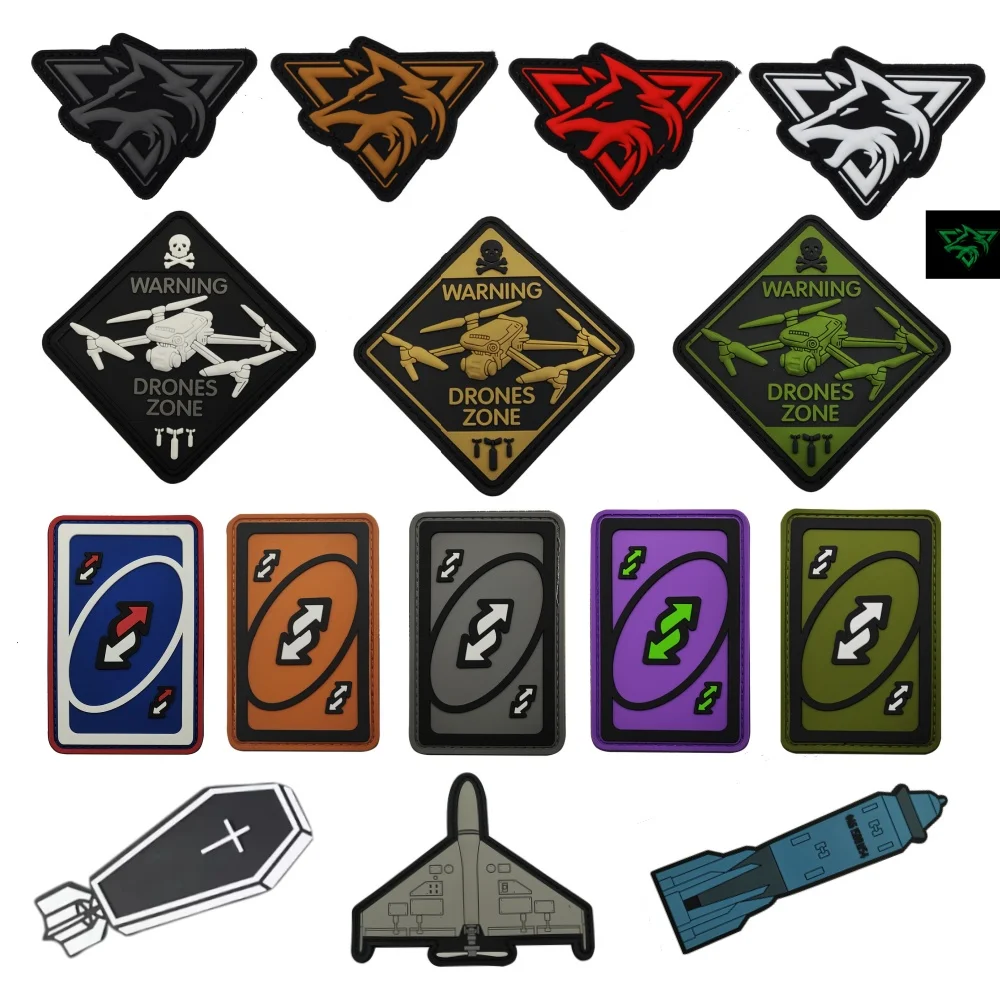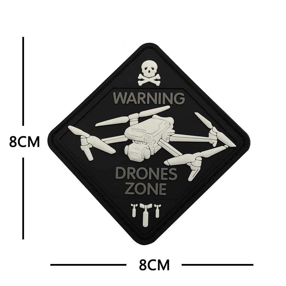 Parche de PVC de Hallowmas en la ropa ADVERTENCIA DRONES ZONE Equipo militar táctico Lobo Cabeza Gancho y bucle Parches Mochila