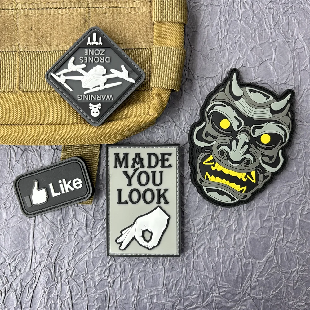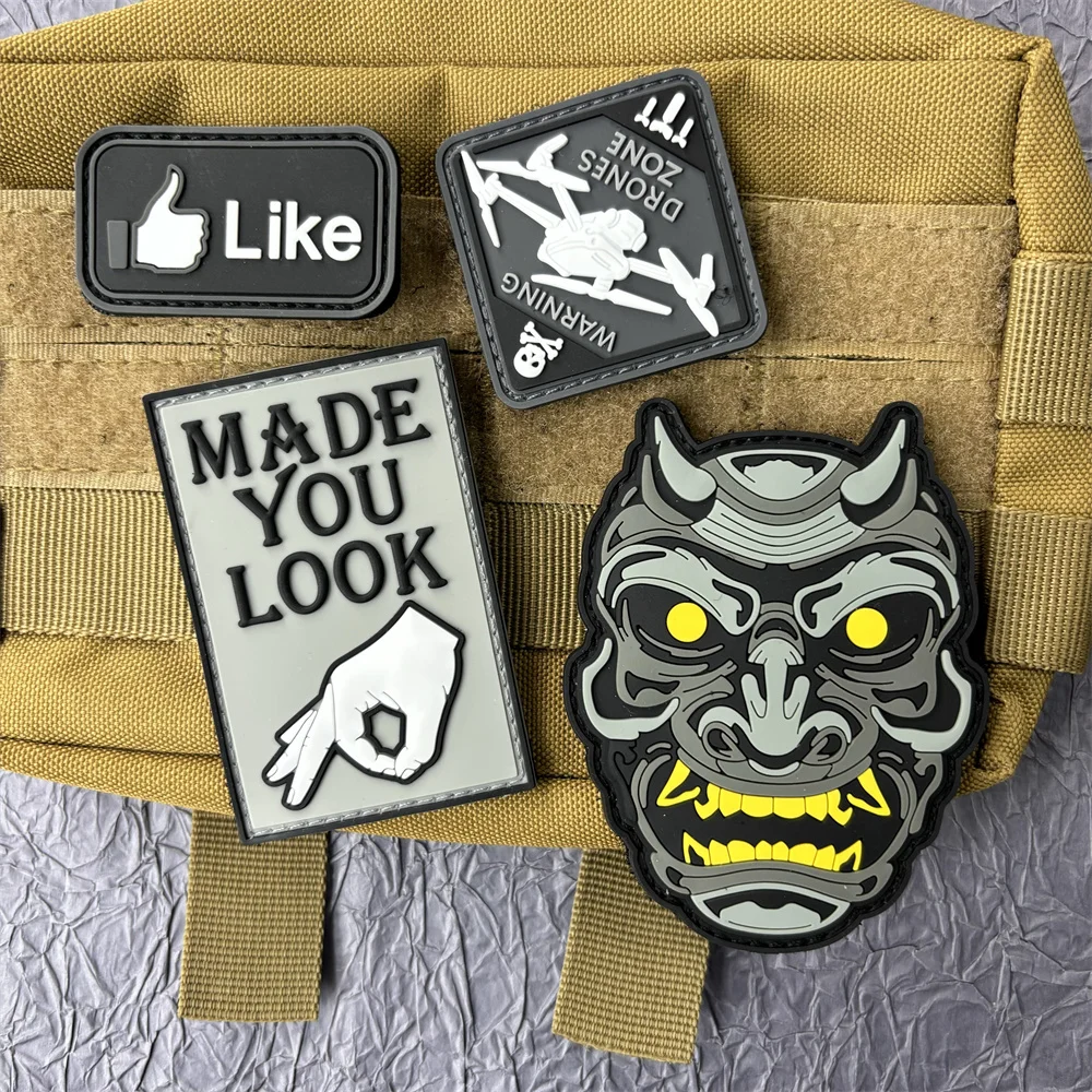 Parche de PVC Hannya, insignia de moral, parches de gancho y bucle, mochila, equipo táctico militar
