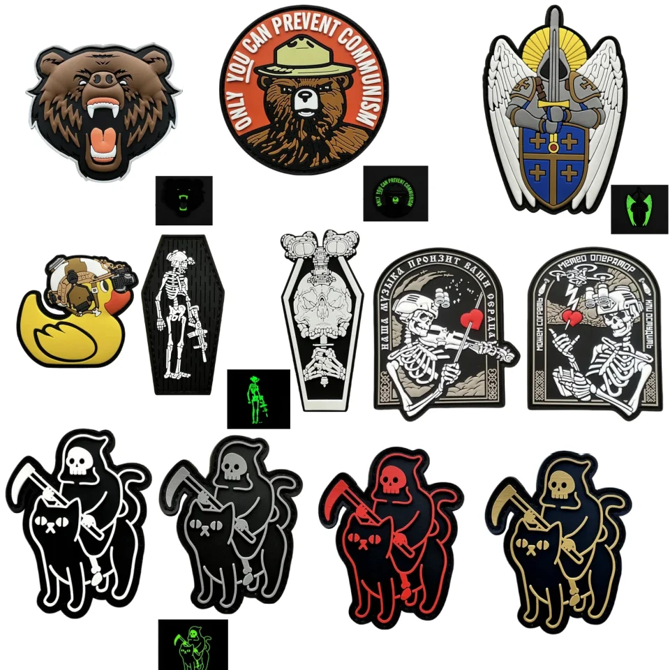 Parche de PVC luminoso para cosechadora fantasma, parche táctico de cabeza de oso, visión nocturna militar, emblema de Calavera, pegatinas para mochila