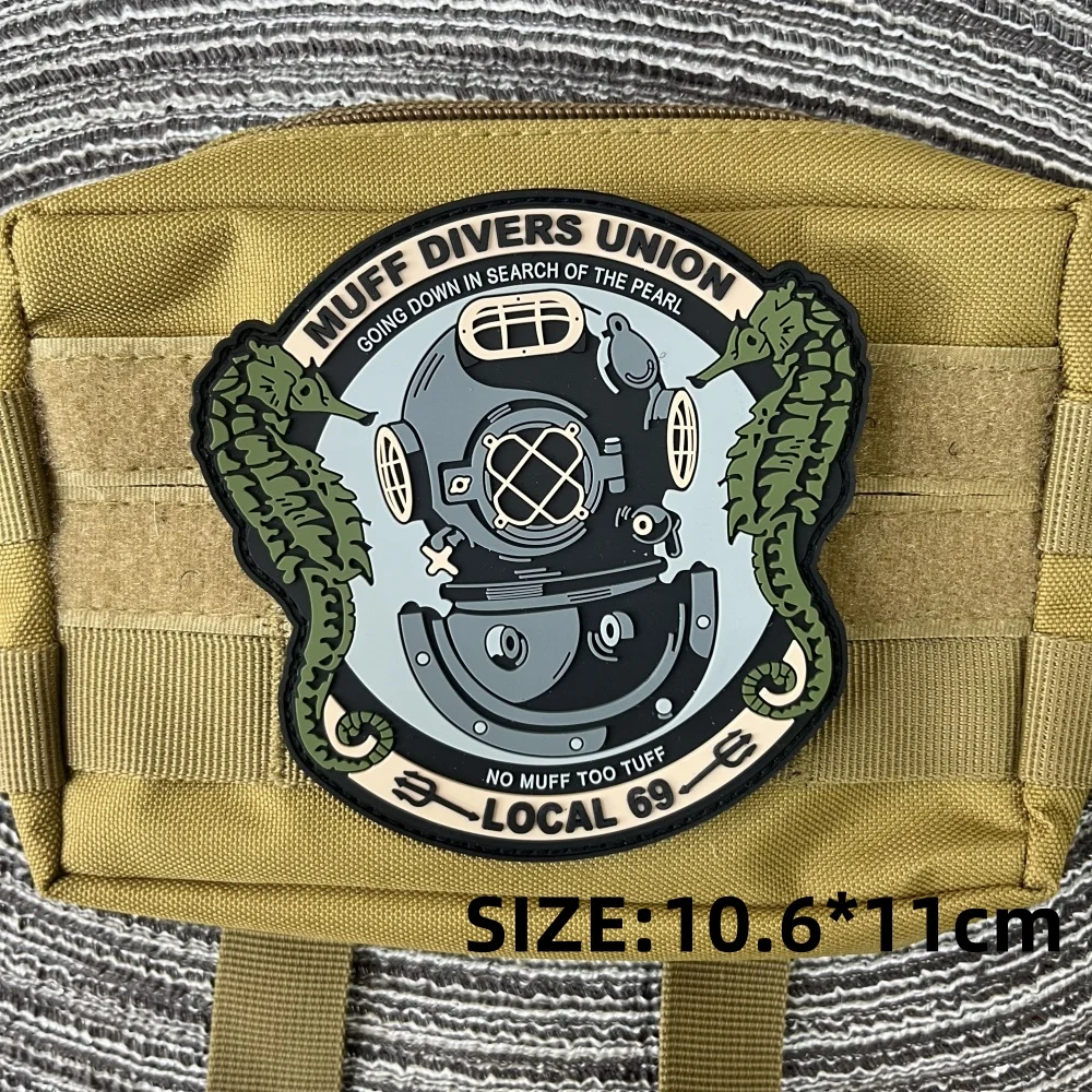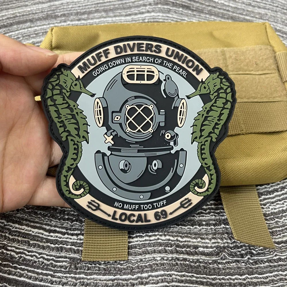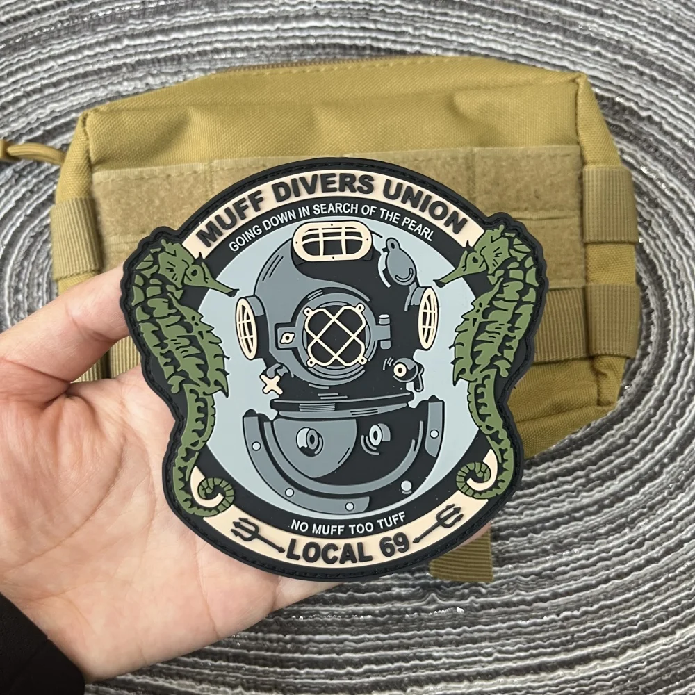 Parche de PVC para mochila Muff Divers Union, parches de gancho y bucle para ropa, pegatinas tácticas, insignias de moral sin pelusa