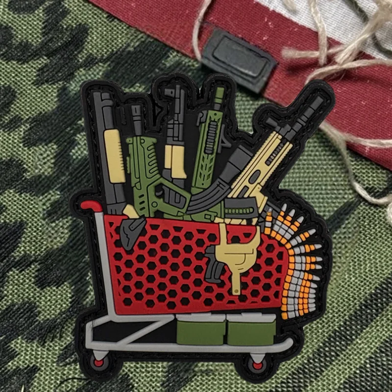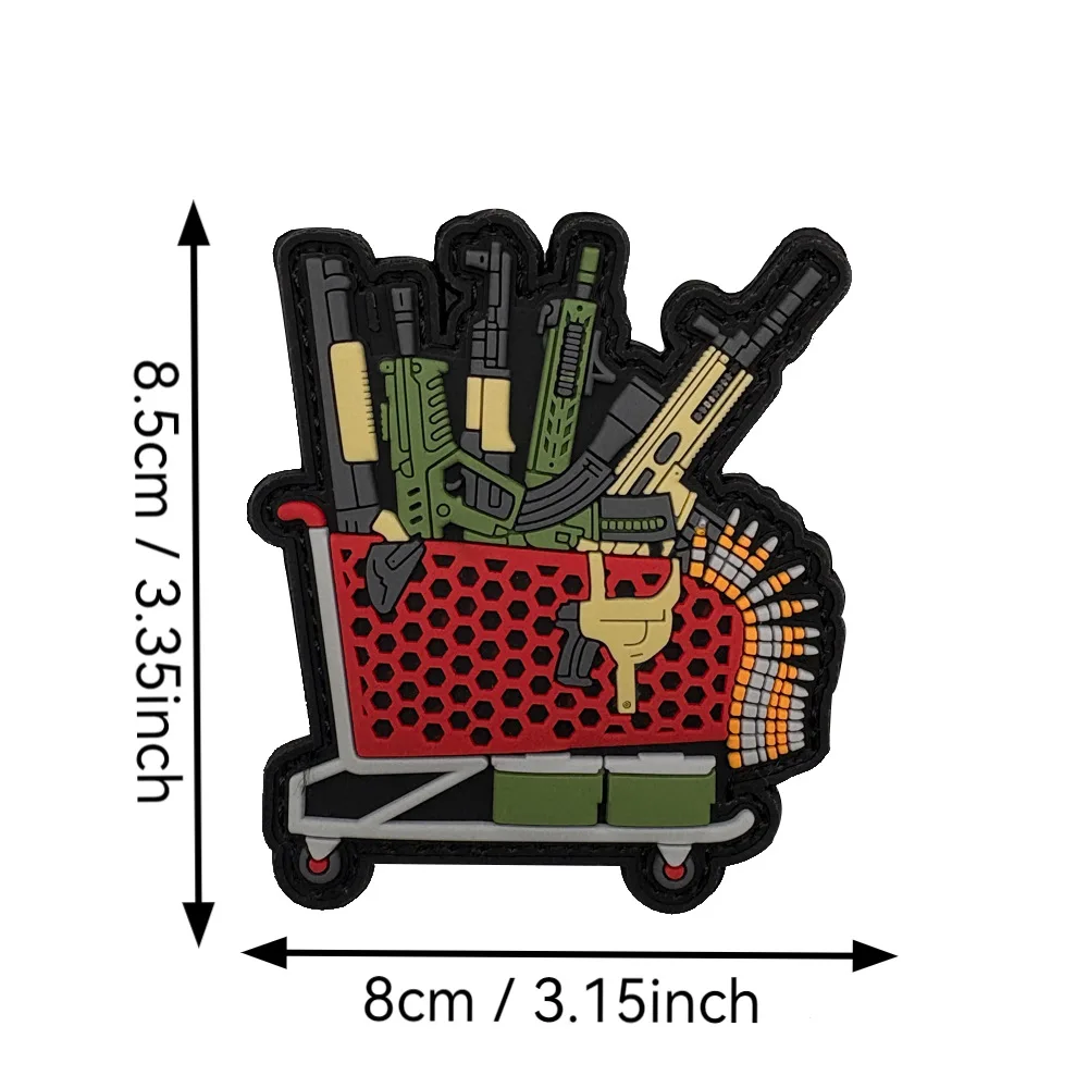 Máquina pistola munición PVC parche chaleco táctico gancho y bucle insignia de moral mochila pegatinas decorativas parches de brazalete para ropa