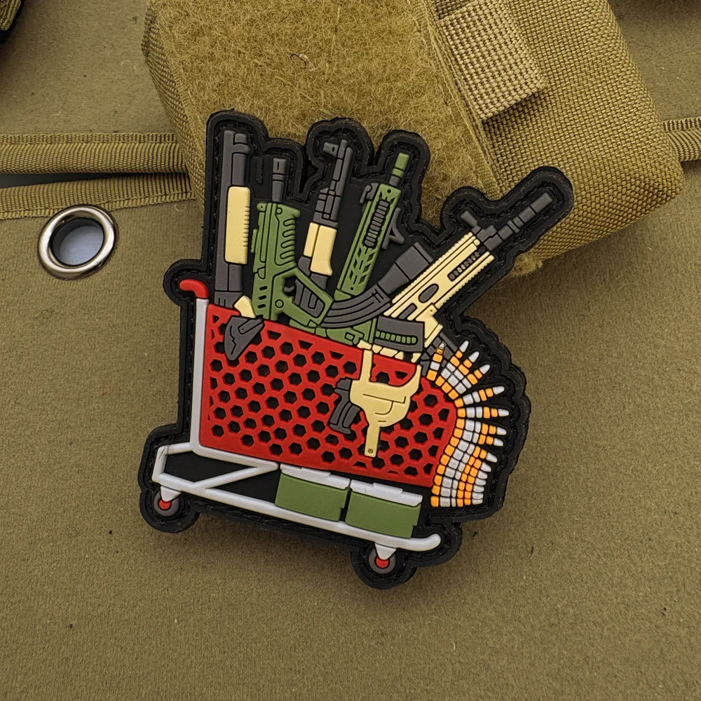 Máquina pistola munición PVC parche chaleco táctico gancho y bucle insignia de moral mochila pegatinas decorativas parches de brazalete para ropa