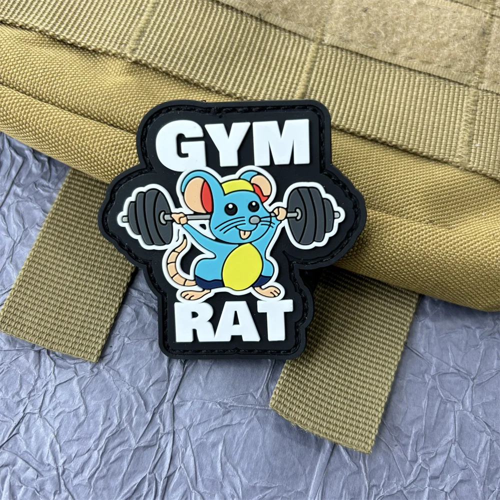 Parche adhesivo de PVC para rata de gimnasio en ropa, pegatinas para gatos, parches tácticos militares de conejo, gancho y bucle para mochila