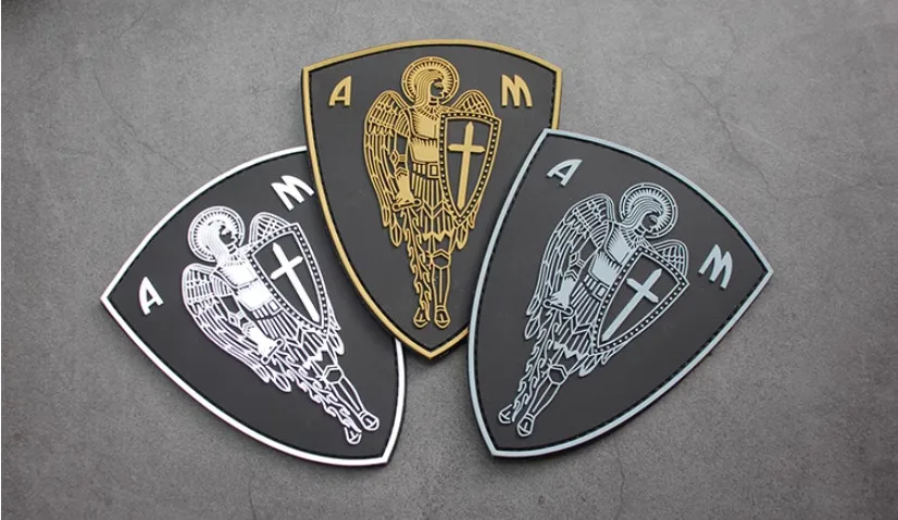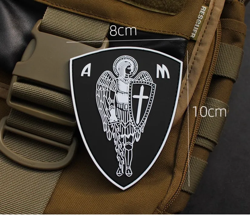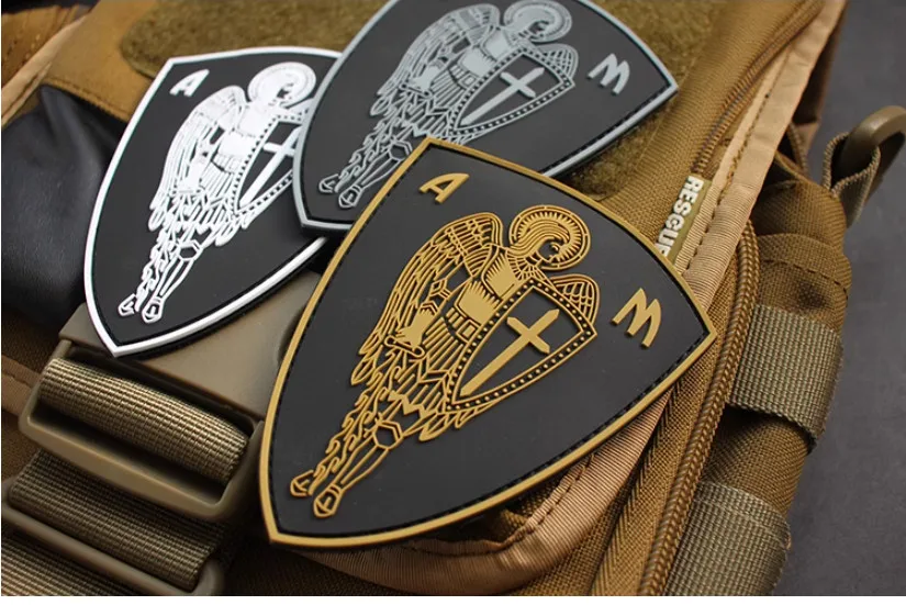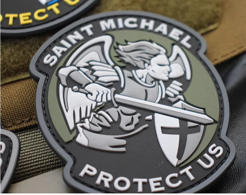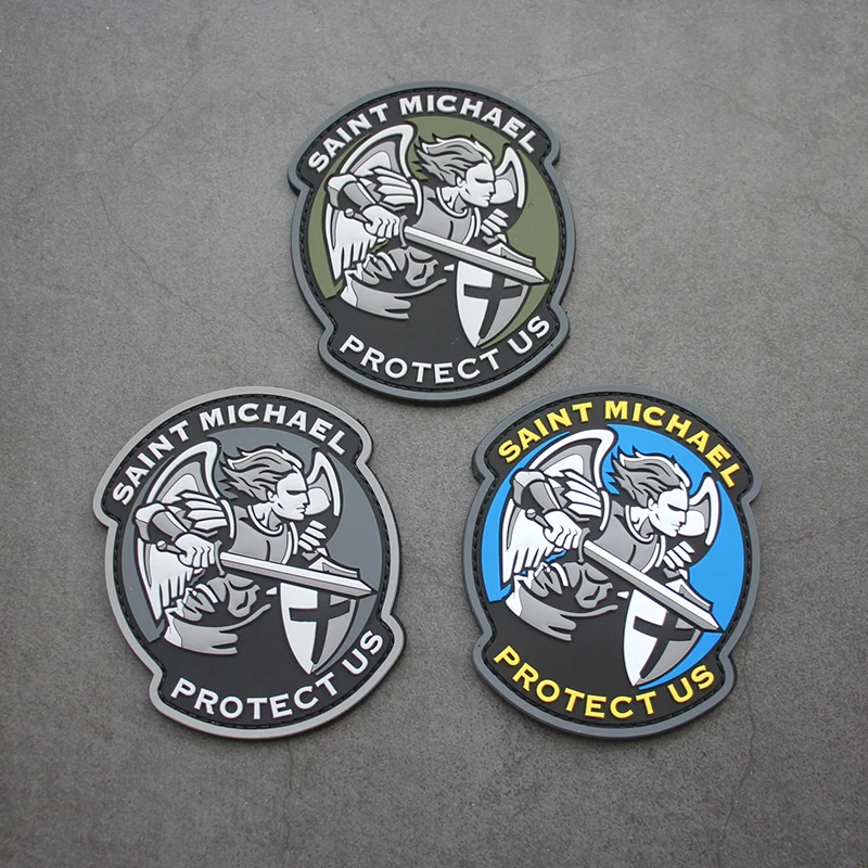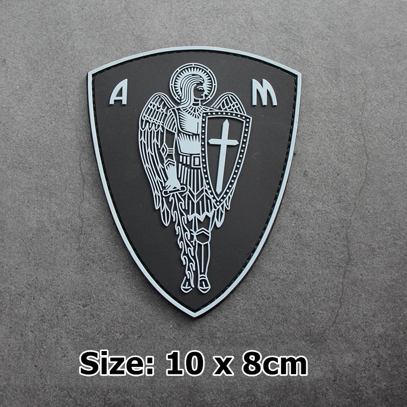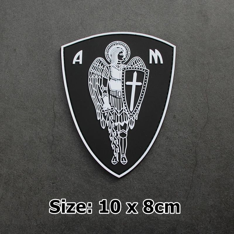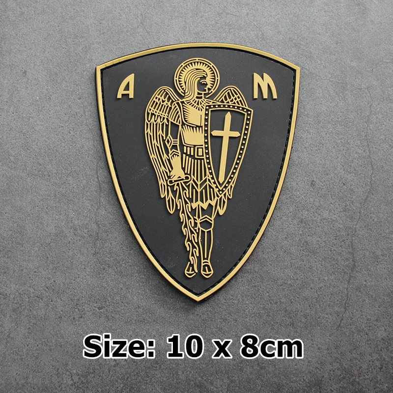 Parche de PVC de Saint Michael Protect Us, insignia de goma táctica 3D de Angel Legion AM Warrior para decoración de mochila de ropa