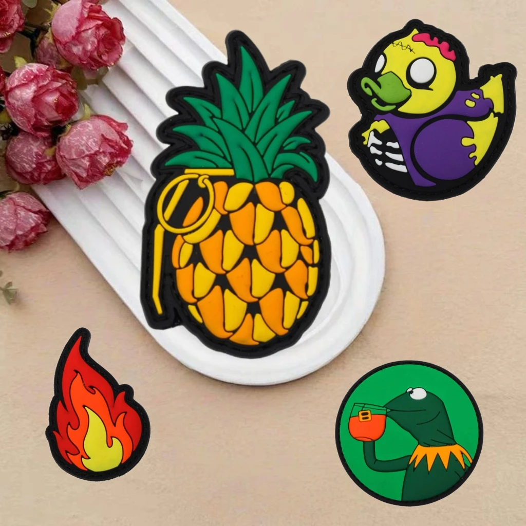 Ugly Cute Skeleton Duck Soft PVC Parches Dibujos animados Beber Monstruo Piña Moral Insignia 3D Llama Mochila Ropa Sombreros Pegatinas