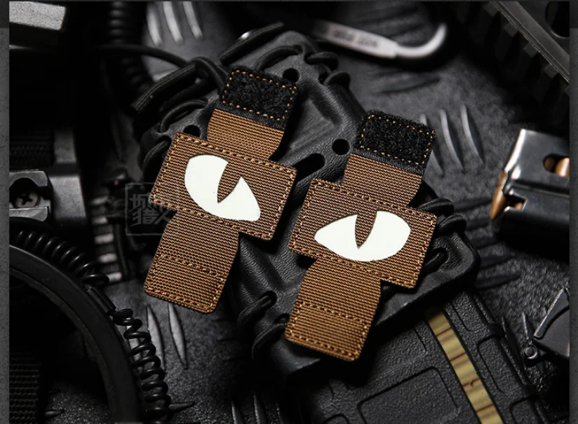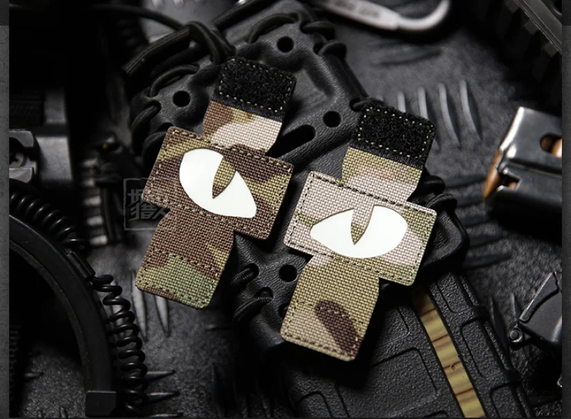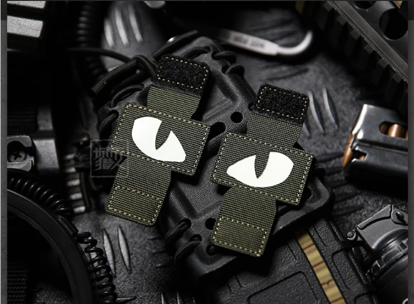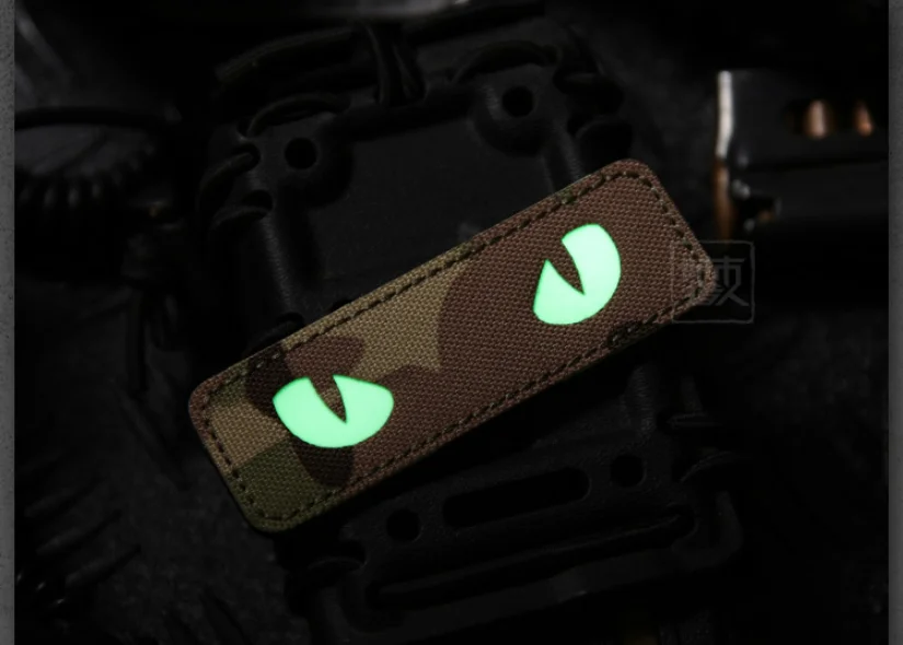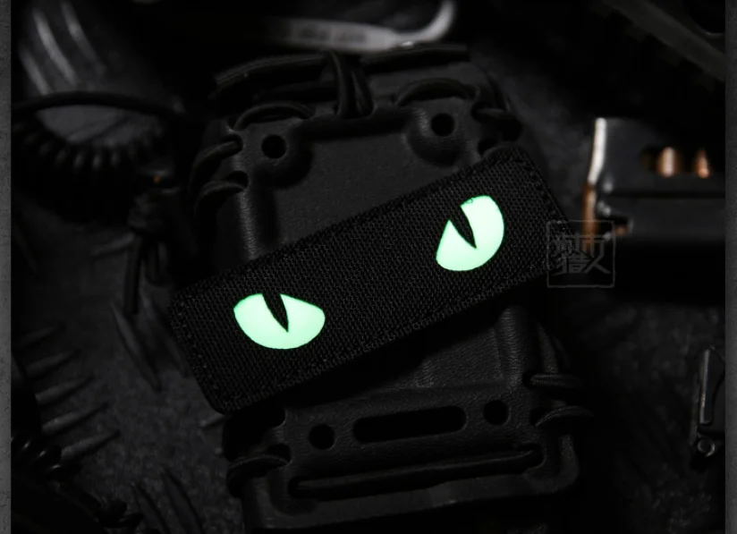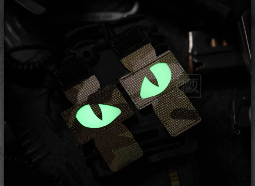 Parche que brilla en la oscuridad, brazalete luminoso de ojo de gato IR de PVC, cierre táctico, insignia de gancho para ropa, mochila, decoración de chaleco