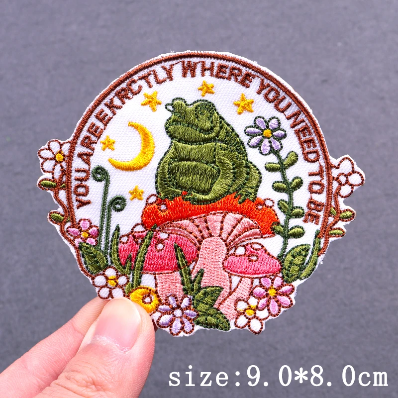 Parche de rana salvaje, parches para planchar para ropa, parches termoadhesivos para ropa, pegatinas de parche bordado de setas y animales