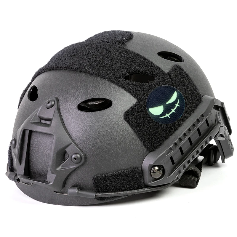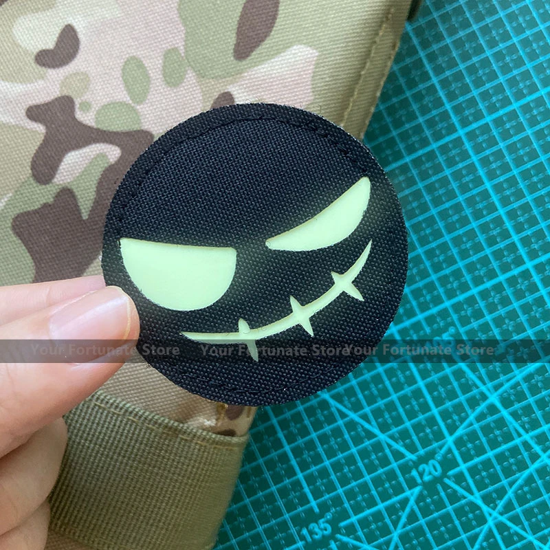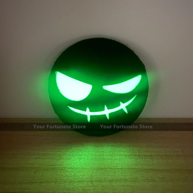 Parche redondo de risa malvada para Halloween, insignia táctica de nailon negro luminoso para ropa, mochila, decoración de sombrero
