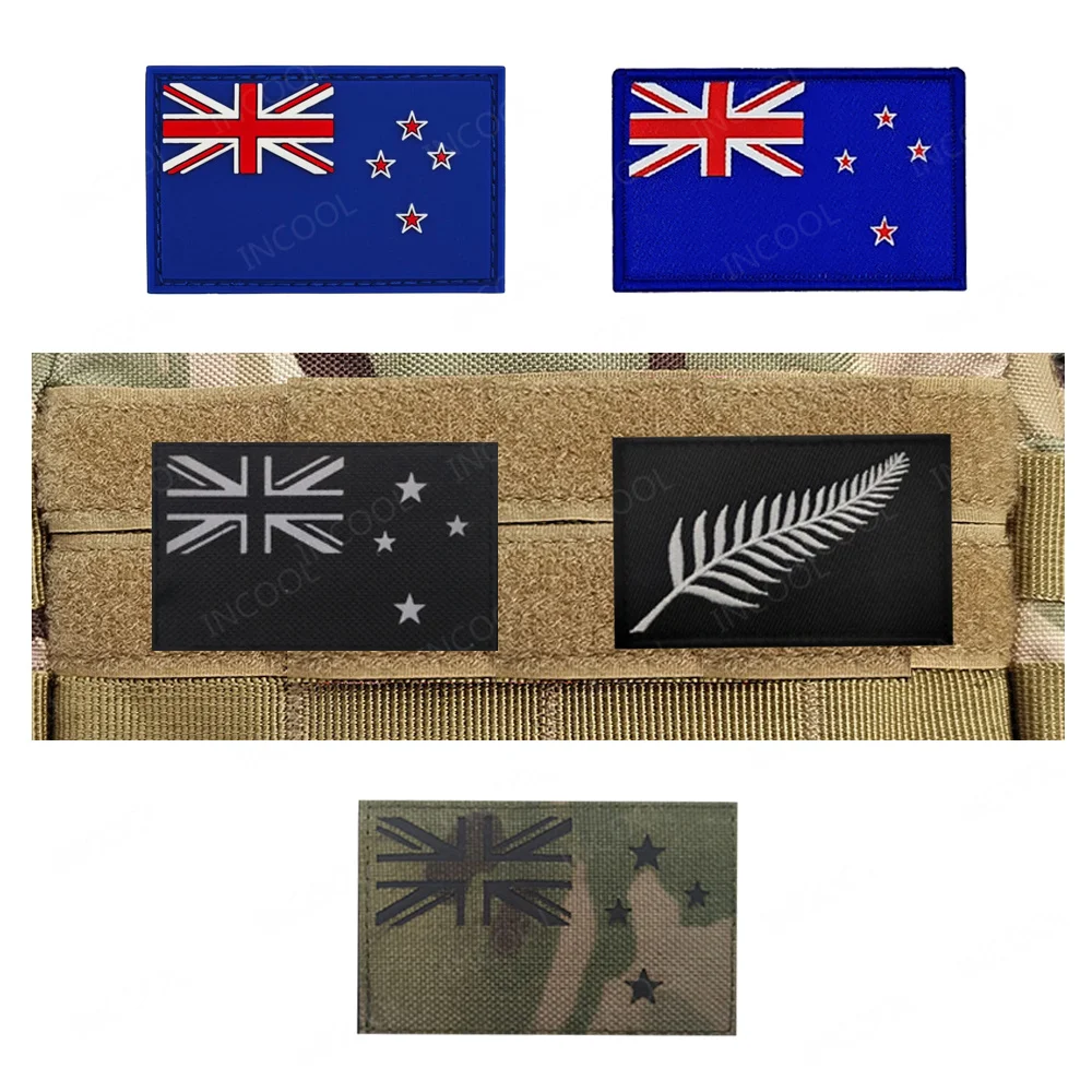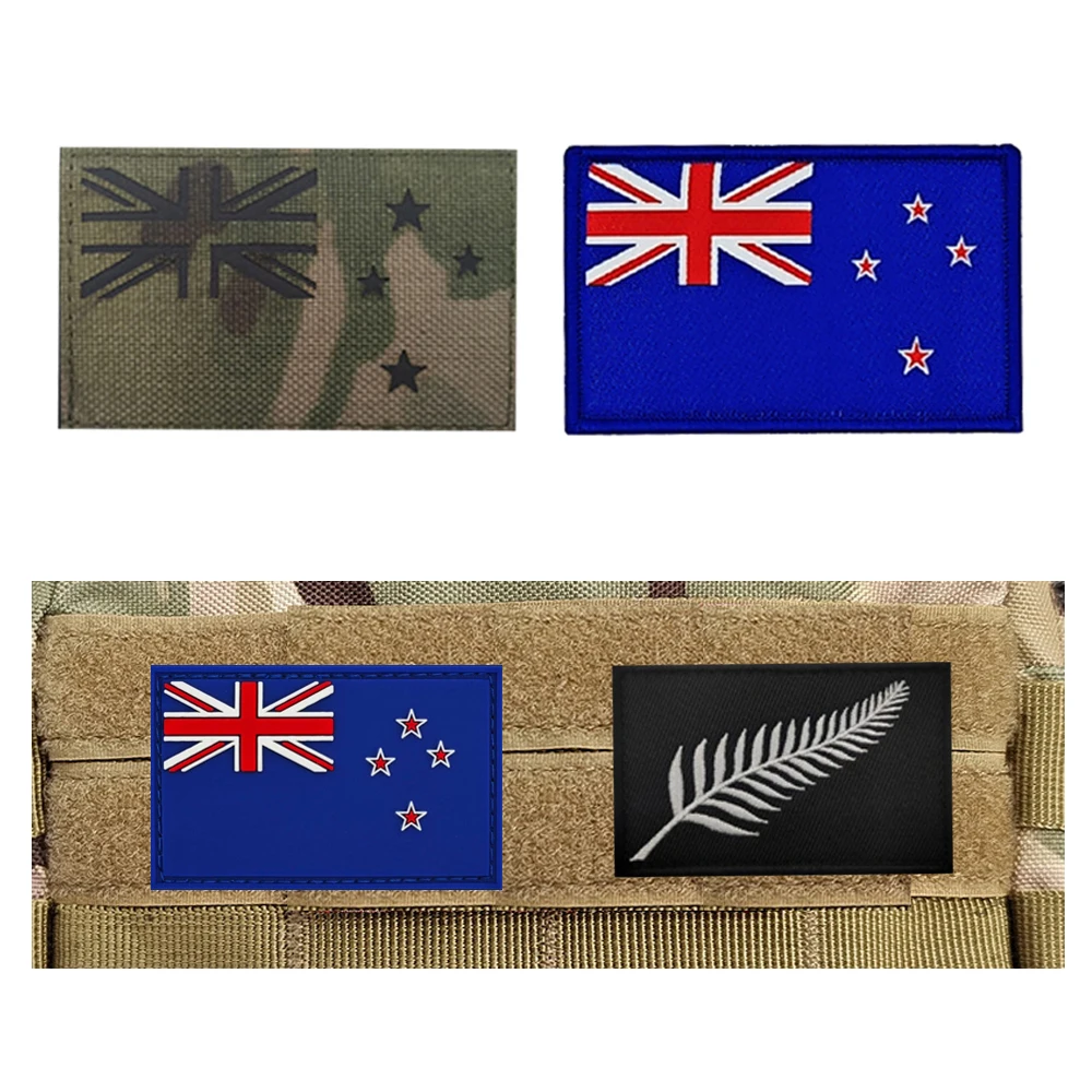 [Especificación]:Parche reflectante de la bandera de Nueva Zelanda, parches bordados de Kiwi con bandera de helecho plateada, apliques de goma de PVC, brazalete, insignias decorativas con gancho