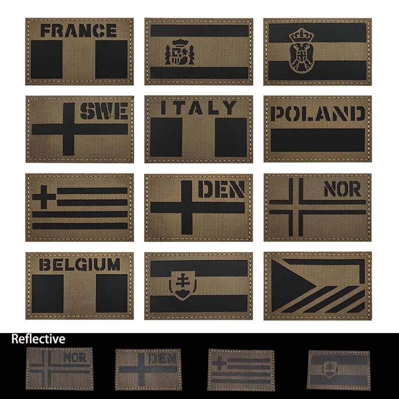 Parche reflectante infrarrojo IR con emblema de la bandera nacional de color caqui, pegatinas militares de España, Francia, Eslovaquia, insignia táctica, apliques para ropa