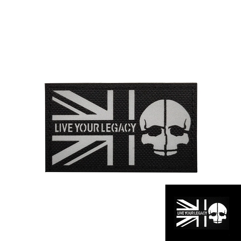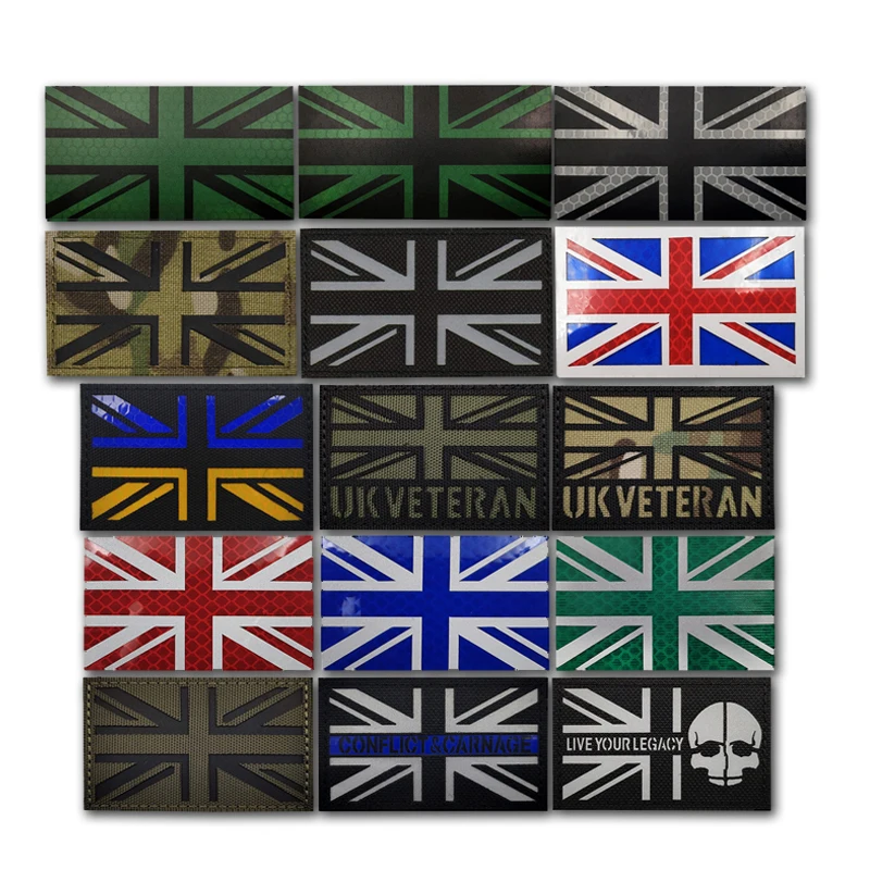 Parche reflectante IR de la bandera británica Union Jack Inglaterra Reino Unido Gran Bretaña Reino Unido aplique militar insignia gancho Fasterner
