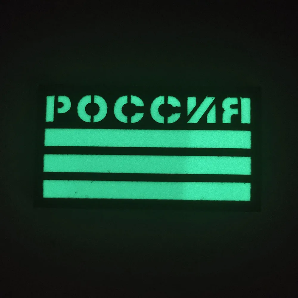 Parche reflectante IR de bandera rusa, emblema táctico de Chevron de Rusia, bordado de soldado, insignia de bucle de gancho, apliques que brillan en la oscuridadCaracterísticas: