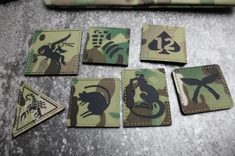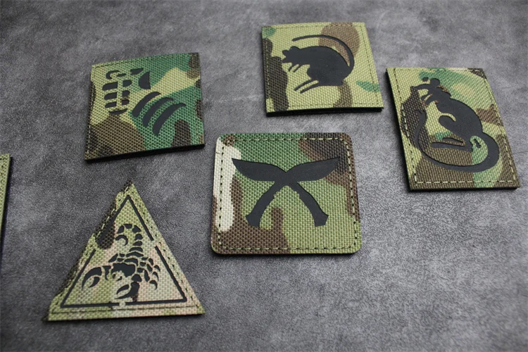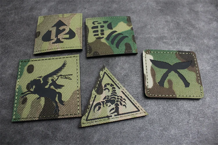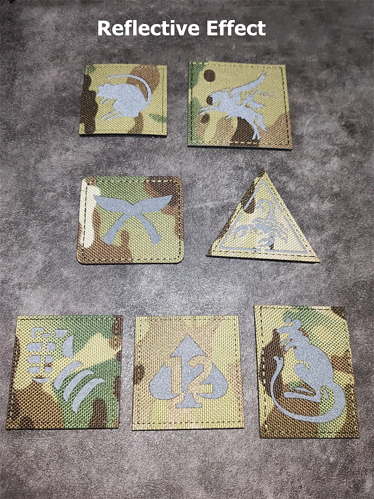 Parche reflectante de la serie de camuflaje, pala, 12 insignias tácticas, Pegaso, Doglegs, ratón, puño de canguro, escorpión para decoración de bolsas de ropa