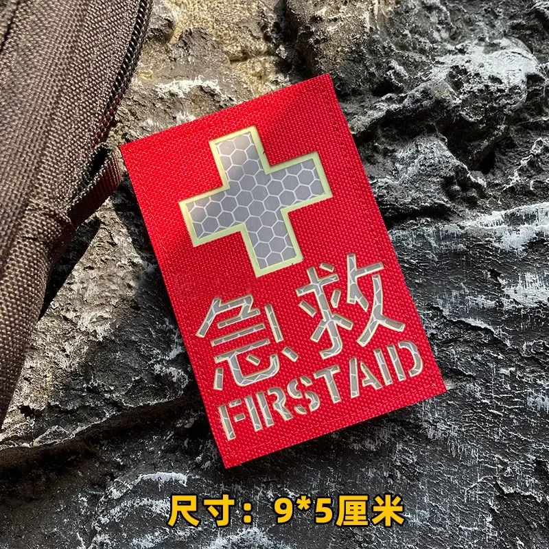 Parche de rescate láser de primeros auxilios luminoso reflectante Hook & loop Insignia de moral al aire libre de alto reconocimiento para ropa Apliques de mochila