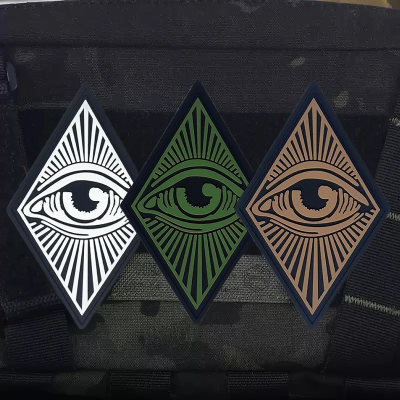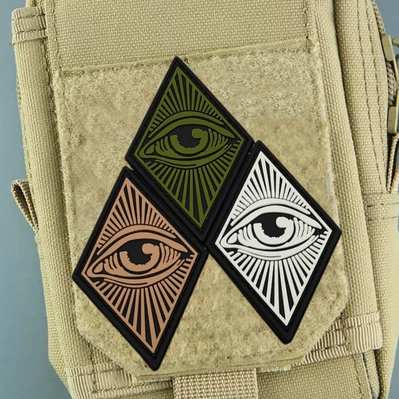 Parche táctico de rombo de PVC con ojos que se ve en ropa, insignia de moral, bucle de gancho, parches militares, pegatinas para brazalete de mochila