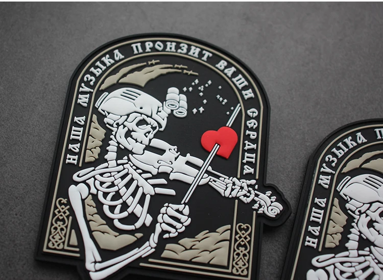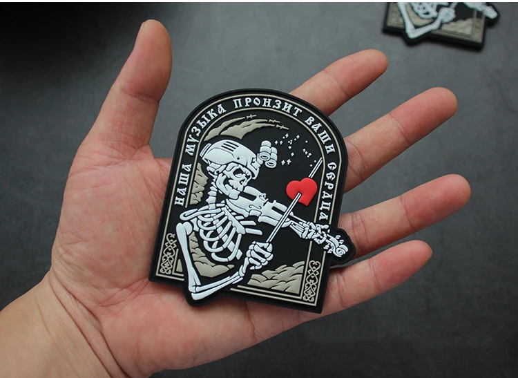 Parche ruso Smola313 de PVC 3D, esqueleto, guerrero, violín, casco táctico, dispositivo de visión nocturna, insignia para ropa, mochila