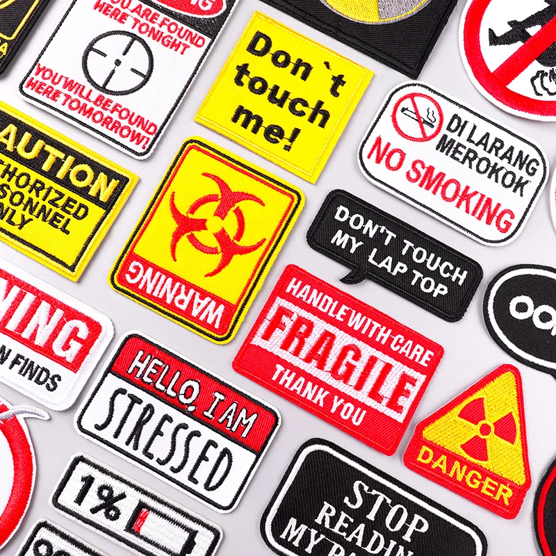 Parche de señal de advertencia de peligro, parches para planchar para ropa, parches bordados DIY en ropa, apliques de costura, parche Fusible